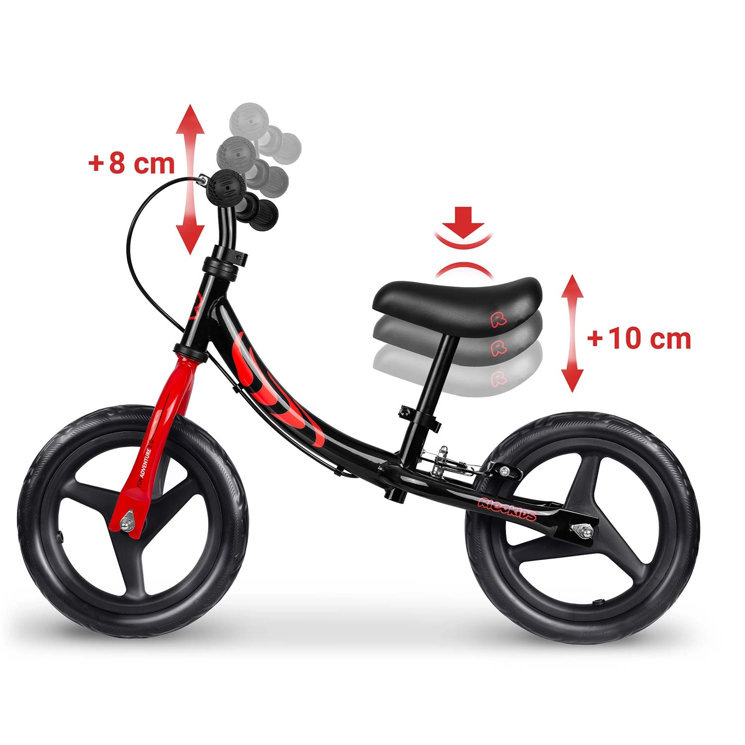 Ricokids Fun Adventure aiuta i bambini ad acquisire in modo naturale equilibrio e sicurezza alla guida. Grazie alla struttura compatta e leggera la porterai facilmente al parco, al parco giochi o in gita. Gli pneumatici in EVA sono silenziosi, non richiedono gonfiaggio, non si forano e offrono un buon grip su erba, asfalto e sabbia.