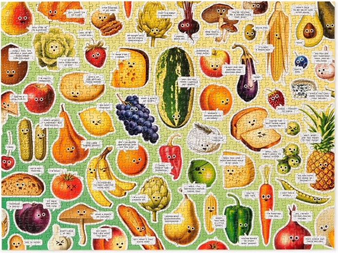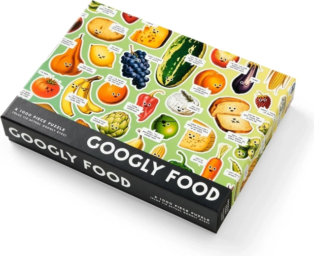 Un collage vivace di alimenti sorridenti con occhi “googly” offre dettagli spassosi e una sfida piacevole sia per principianti sia per esperti.
