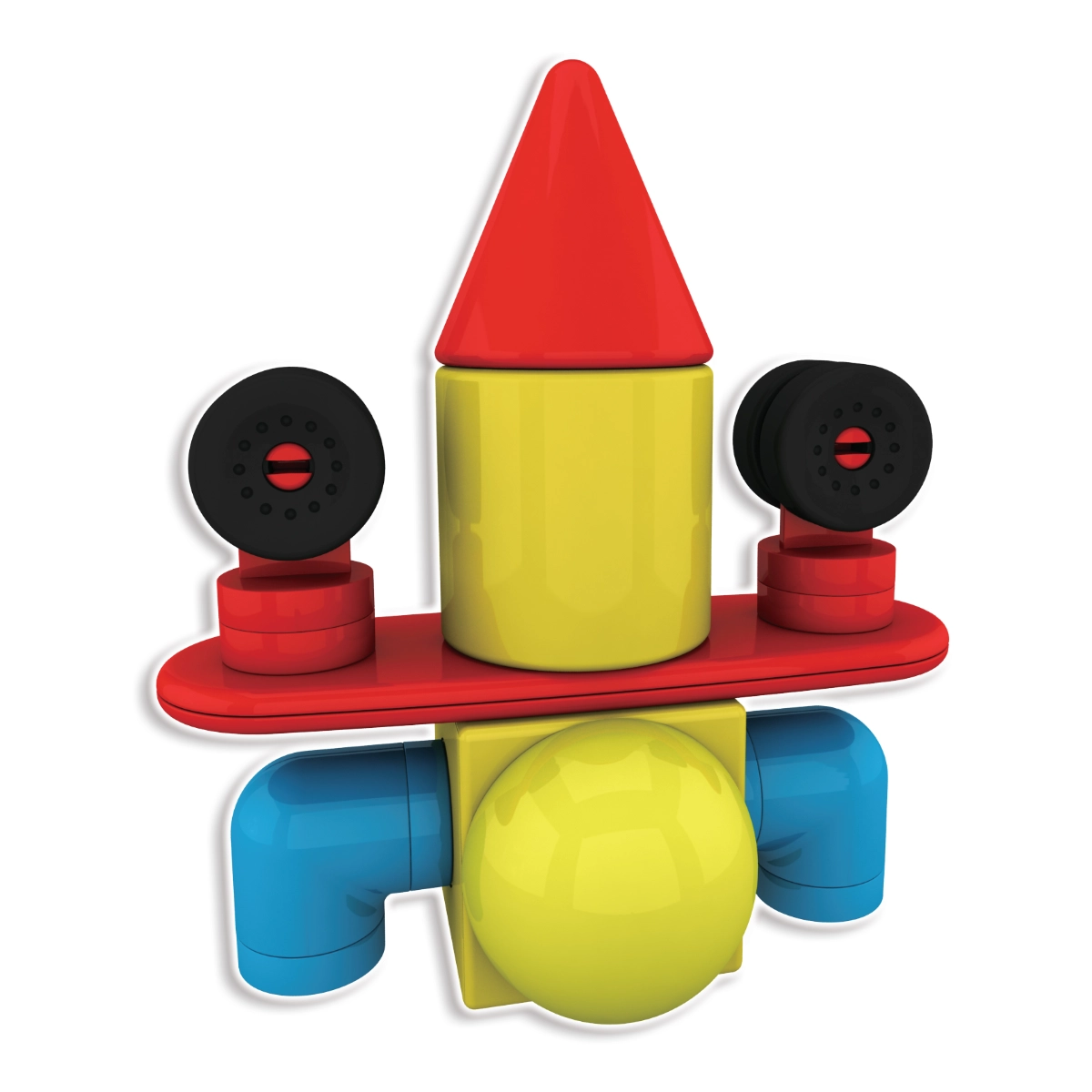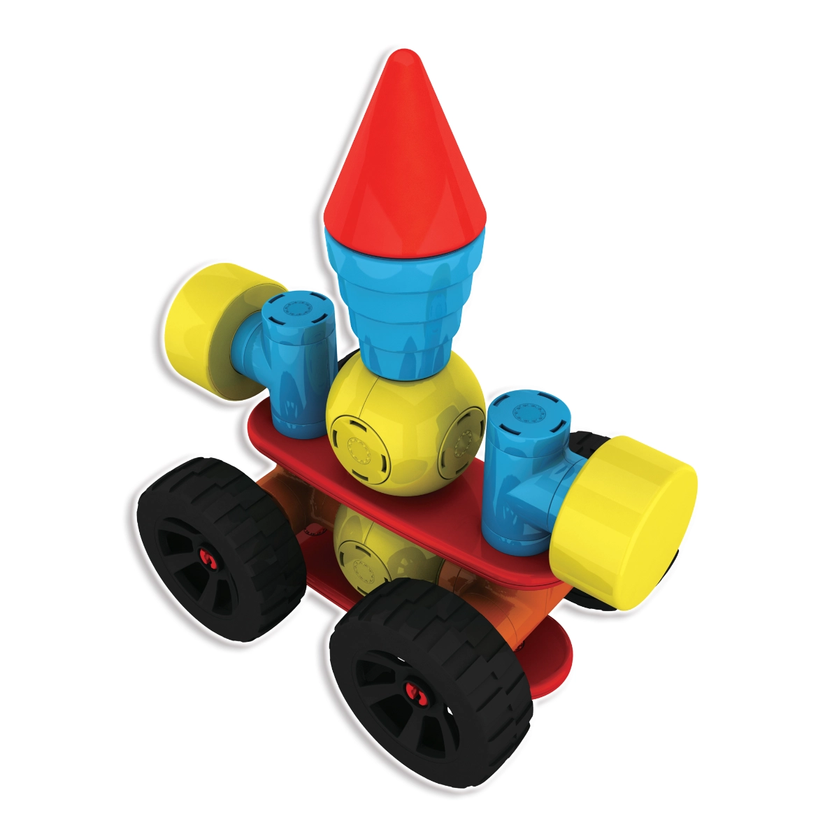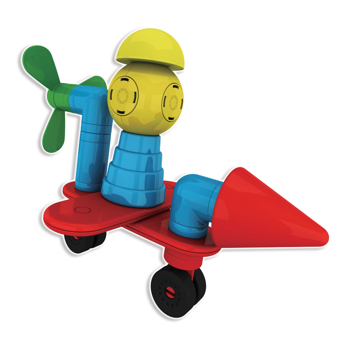 Ruote ed eliche trasformano le costruzioni in veicoli dinamici e macchine volanti. I bambini possono ricostruire continuamente e scoprire nuove combinazioni che sviluppano creatività e logica.