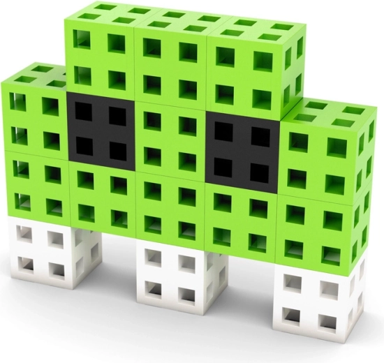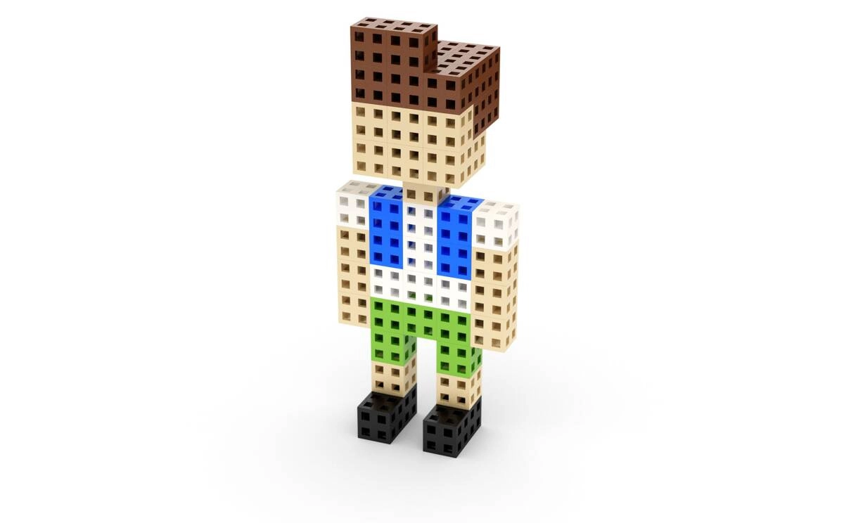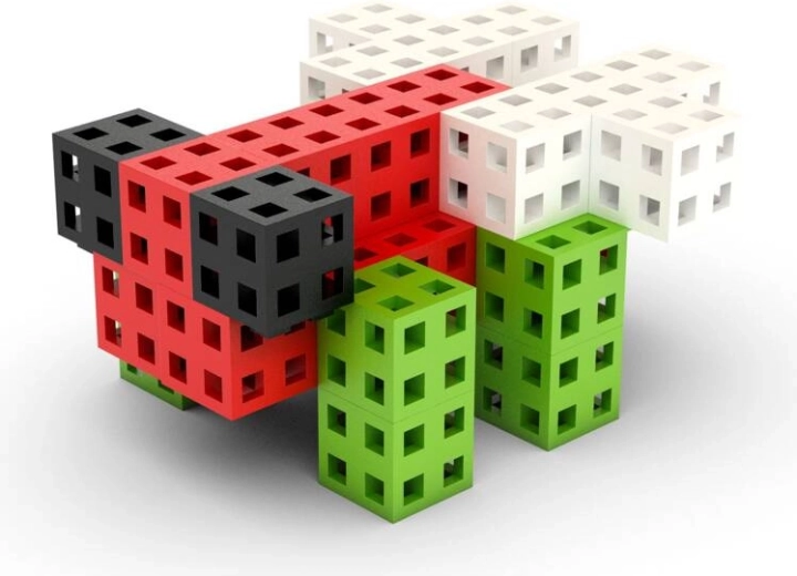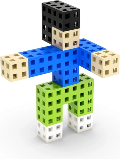 I cubi da 2 × 2 × 2 cm con griglia cava si collegano in diverse direzioni, così potrai creare facilmente personaggi, animali e modelli architettonici.