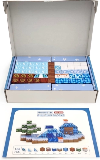 Questo kit educativo offre 108 pezzi magnetici assortiti nei colori del ghiaccio, del legno e con motivi invernali. Grazie ai magneti robusti e sicuri, i bambini costruiscono facilmente strutture stabili, imparano i principi del magnetismo e le basi del pensiero costruttivo. Il tema invernale stimola la fantasia e la narrazione di storie proprie.