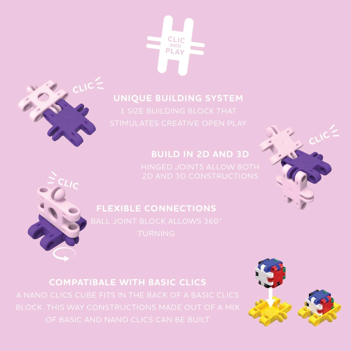 Amplia la fantasia dei bambini con progetti epici. Il set Nano Clics con 250 piccoli elementi costruttivi è pensato per modelli dettagliati e costruzioni ben studiate. I bambini possono costruire castelli maestosi, eserciti di creature e interi regni, sviluppando al contempo la motricità fine, la pazienza e la capacità di raccontare le proprie storie.