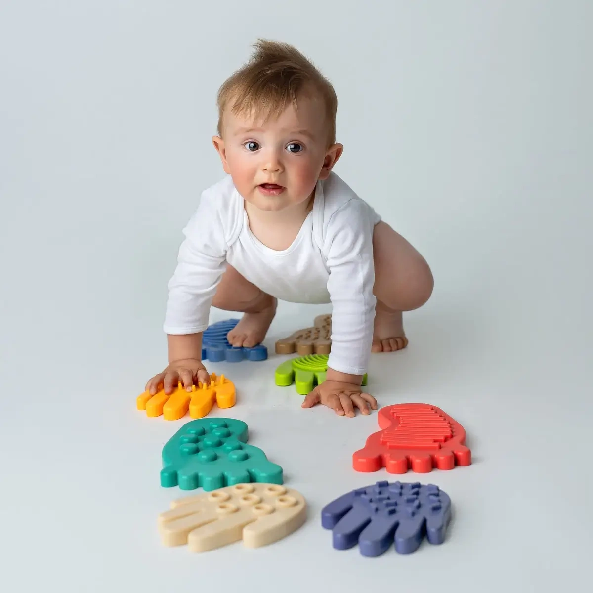 SENSORKY offre ai bambini un ricco mondo di sensazioni tattili. Camminare e gattonare sugli elementi con superfici diverse rinforza i piccoli muscoli di piedi e mani, migliora la percezione del proprio corpo e contribuisce a una migliore integrazione degli stimoli sensoriali. Il prodotto premiato Kids' Time Star 2025 unisce motivazione al gioco e mirata stimolazione sensoriale ed è un ottimo alleato per l’esercizio quotidiano.