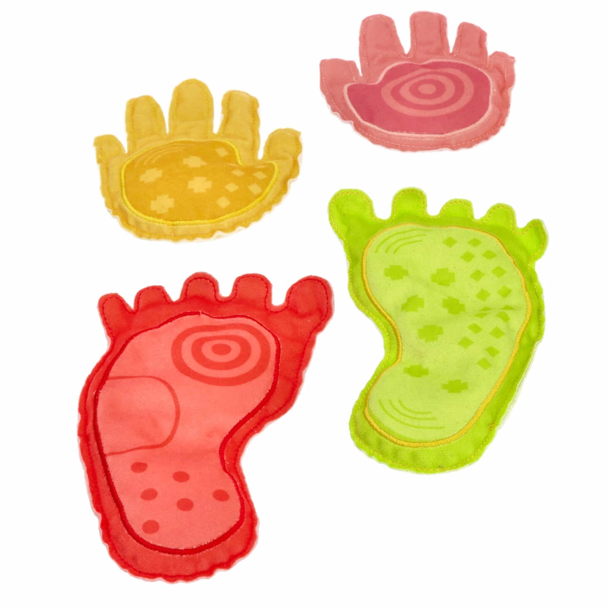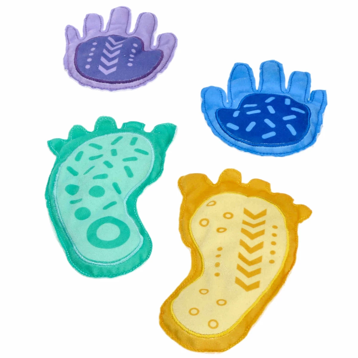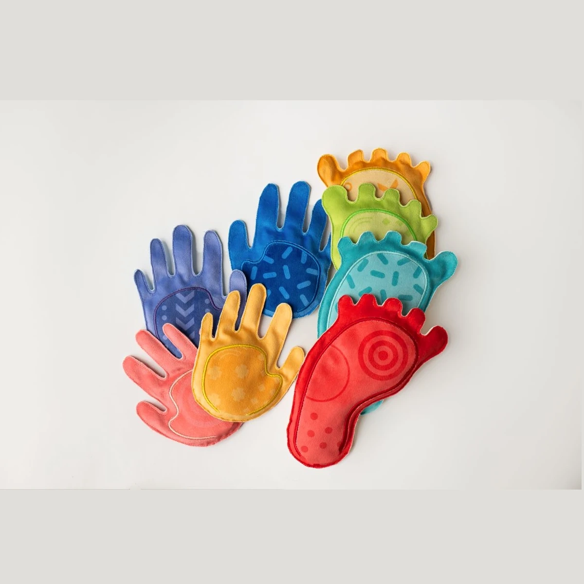 Mani e piedi colorati guidano i passi, insegnano un appoggio preciso, rafforzano la stabilità del corpo e la coordinazione occhio-mano durante giochi ed esercizi.