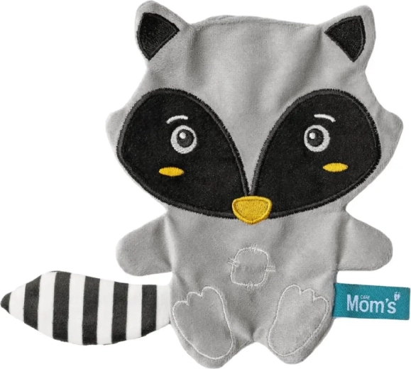 Grazie alle superfici variegate, al viso del procione ricamato e alle etichette e coda colorate, il bambino allena coordinazione occhio–mano e presa. Il giocattolo è realizzato con cura in Polonia e rispetta le norme di sicurezza europee: ideale a casa, in viaggio e per il passeggino.