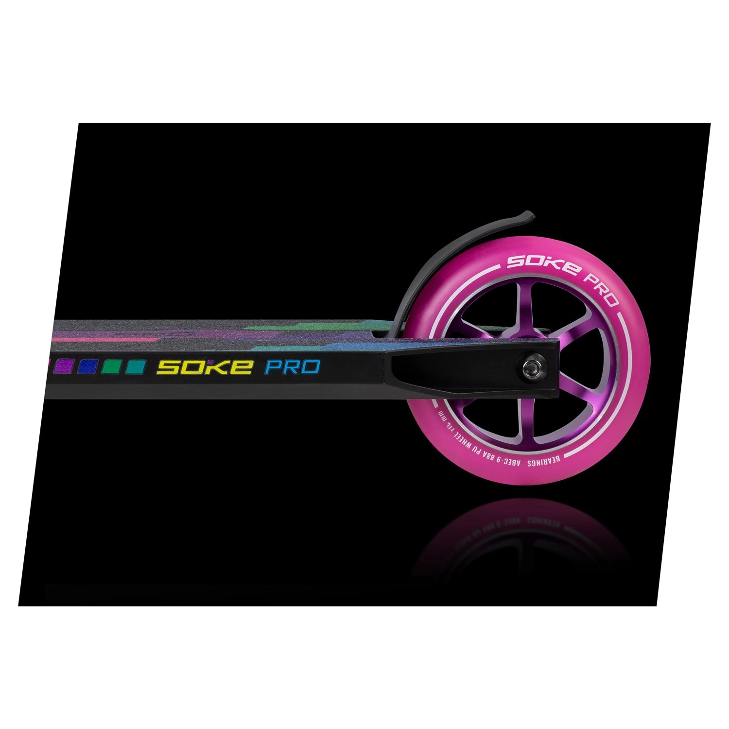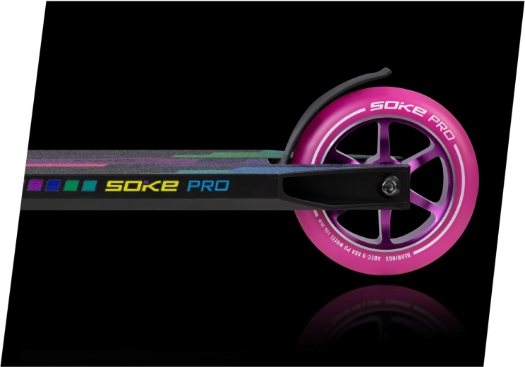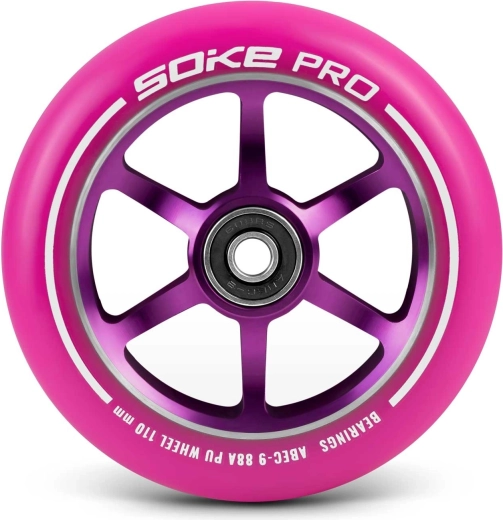 Le ruote SOKE da 110 mm sono progettate per una guida fluida, veloce e stabile. Grazie alla mescola PU 88A aderiscono molto bene alle superfici dure come l’asfalto, rimanendo al tempo stesso sufficientemente rapide per street e park. Il core in alluminio con struttura a cinque razze aumenta la resistenza e riduce il peso – scelta ideale per allenare i trick e per il commuting quotidiano.