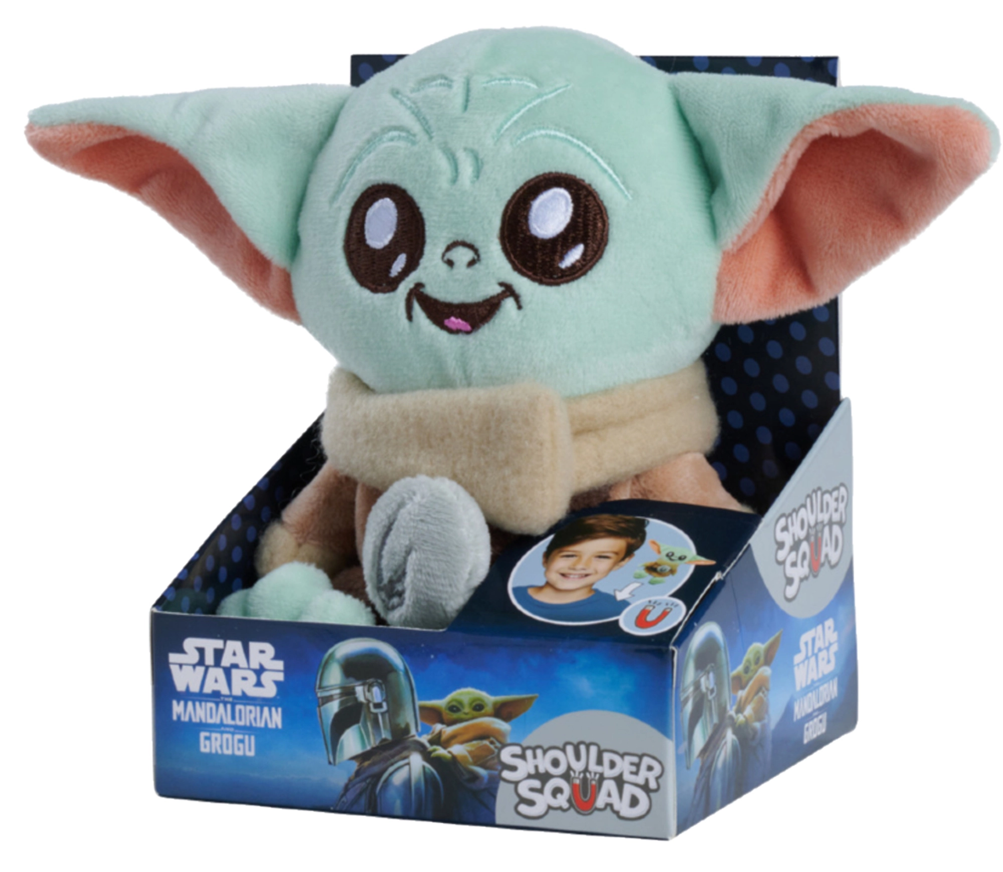 Fissa il tuo eroe preferito sulla spalla e parti all’avventura! Il peluche di Grogu (Baby Yoda) da STAR WARS: The Mandalorian è progettato per “sedersi” in modo comodo e sicuro sulla tua spalla grazie al sistema di fissaggio magnetico. Basta inserire il magnete sotto i vestiti e posizionare il peluche sopra.