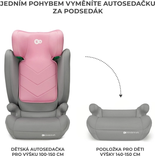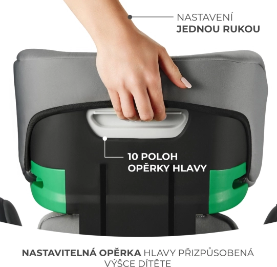 Regoli il poggiatesta con una mano in 10 livelli. Per i bambini più alti (140–150 cm) è possibile rimuovere lo schienale e utilizzare un comodo rialzo omologato.