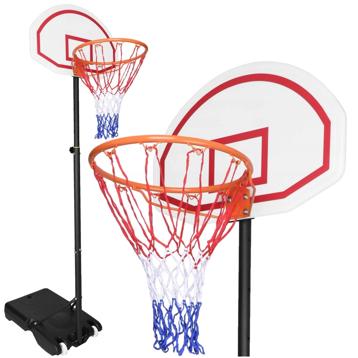 Regoli facilmente l’altezza del canestro da 165 a 205 cm, adatta a diverse fasce d’età e livelli di abilità. La base riempibile con acqua o sabbia offre stabilità, mentre le ruote di trasporto permettono di spostare rapidamente il canestro dove stai giocando.