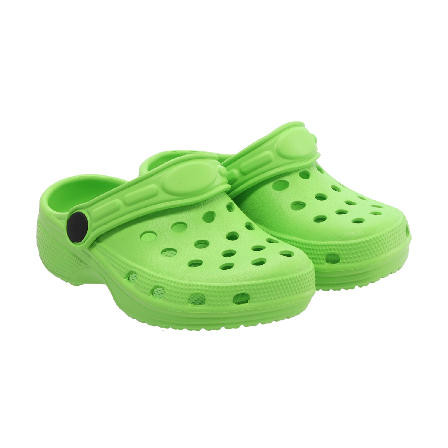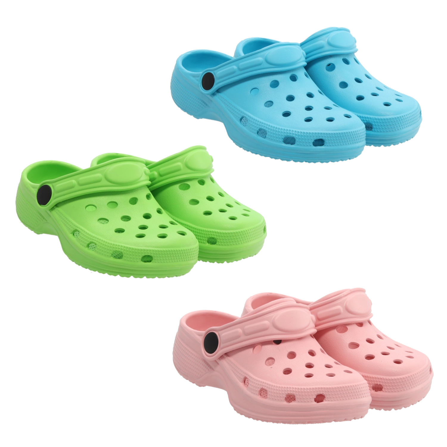 Leggeri zoccoli per bambini in resistente schiuma EVA offrono peso minimo, resistenza all’acqua e all’usura e, grazie ai fori di ventilazione, anche ottima traspirabilità. La suola sagomata garantisce comfort e passo sicuro, mentre il cinturino posteriore bidirezionale mantiene la calzatura ben salda al piede. Si puliscono facilmente e sono ideali per l’uso quotidiano in giardino, a casa e in vacanza.