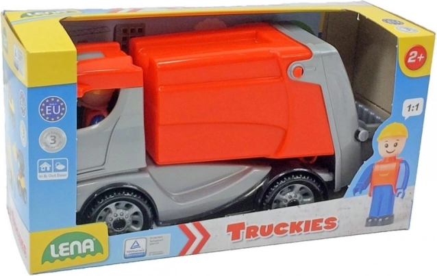 Divertente camion dei rifiuti della linea Lena Truckies per bambini dai 2 anni, con struttura robusta, piena funzionalità meccanica e plastica resistente. Include una cabina apribile con la figurina dell’autista e un contenitore posteriore per un gioco realistico di raccolta rifiuti – ideale per sviluppare fantasia e motricità fine.
