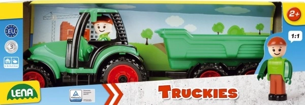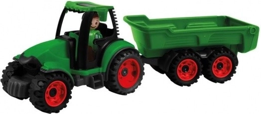 Il trattore con rimorchio della linea Truckies conquisterà piccoli costruttori e giovani agricoltori. Grazie alla struttura resistente e ai comandi completamente meccanici, i bambini vivranno un gioco autentico senza batterie: sollevamento del cassone, aggancio e sgancio del rimorchio e guida con la figurina del conducente.