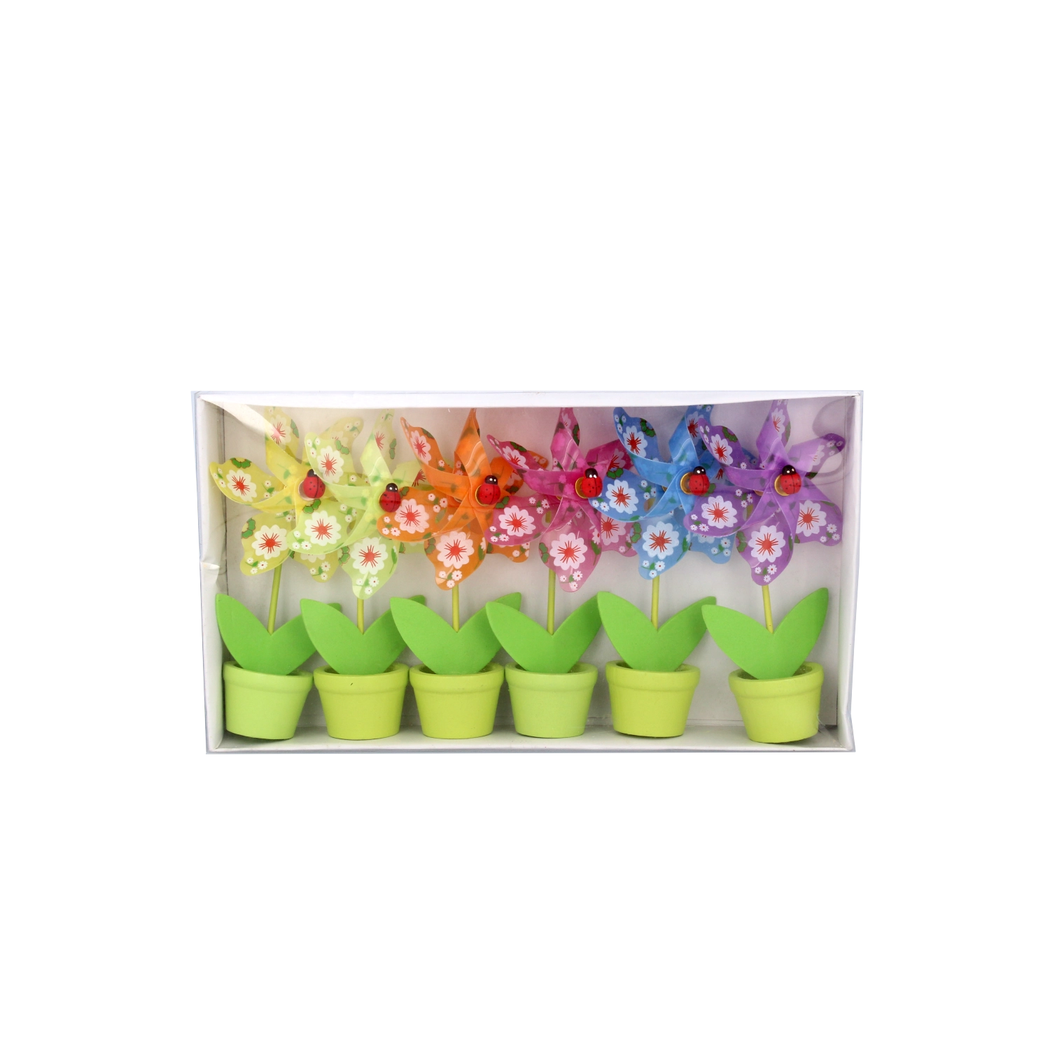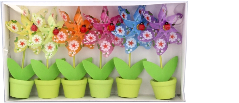 Una simpatica girandola decorativa a forma di fiore con una coccinella che farà felici bambini e adulti. Le dimensioni compatte 9 × 15 cm sono perfette per tavolo, davanzale o cameretta. Disponibile in un mix di 6 colori vivaci, realizzata con materiali resistenti PVC, PP e legno per una lunga durata e facile manutenzione.