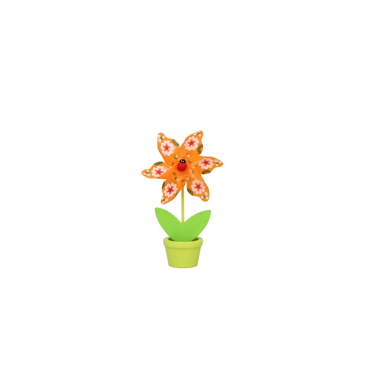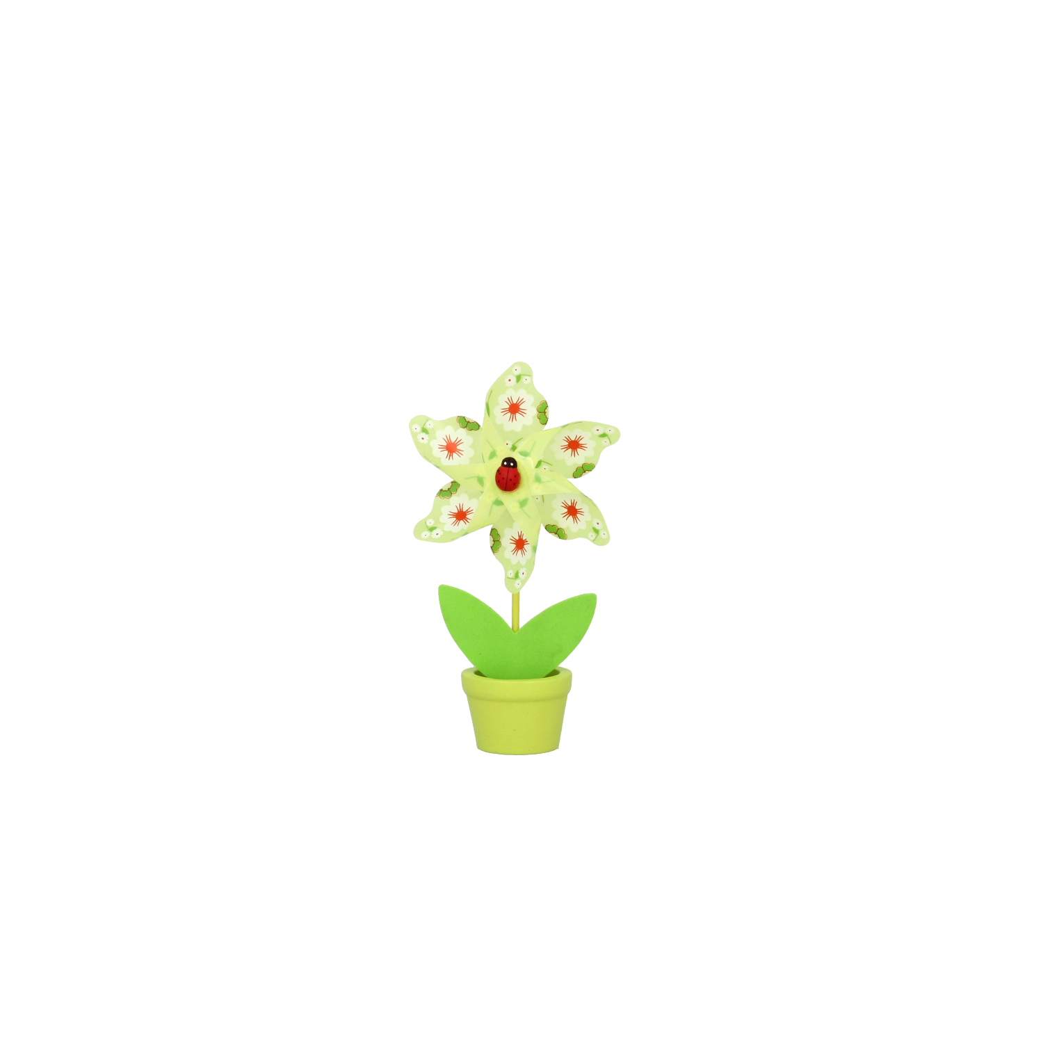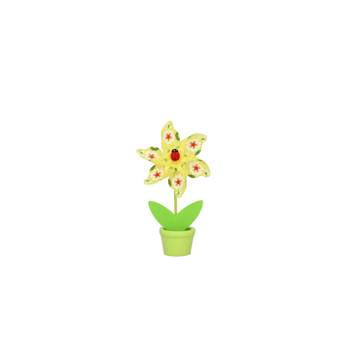 Ravviva l’interno o l’angolo dei bambini con una colorata girandola con coccinella in un mini vasetto. Leggera e stabile, gira anche con una lieve brezza e porta allegria e colore all’ambiente. Le dimensioni compatte la rendono perfetta per scrivania, mensola o davanzale.