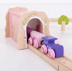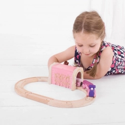 Una graziosa galleria rosa in legno massiccio che arricchisce ogni pista ferroviaria in legno e trasforma il gioco in un’avventura magica. È compatibile con la maggior parte dei binari in legno sul mercato, vanta una lavorazione di qualità, rispetta le norme di sicurezza europee e sviluppa immaginazione, destrezza e coordinazione nei bambini dai 3 anni in su.