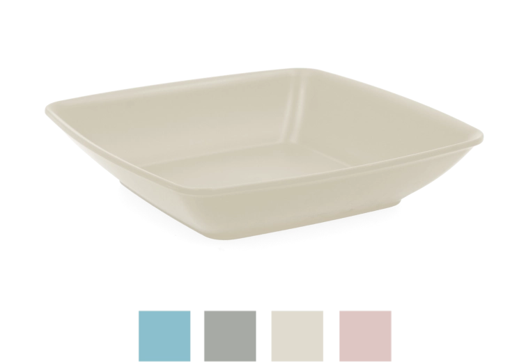 Il piatto è lavabile in lavastoviglie ed è disponibile in diverse varianti di colore per abbinarsi al resto del servizio.