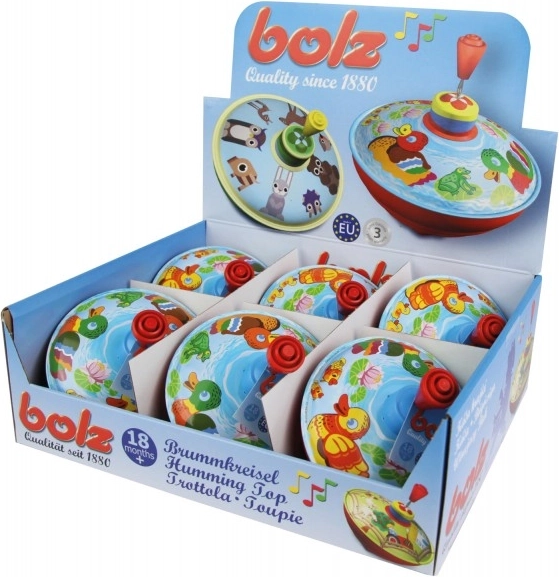 - Facile da usare – basta tirare e premere la leva: la trottola gira ed emette un suono caratteristico.