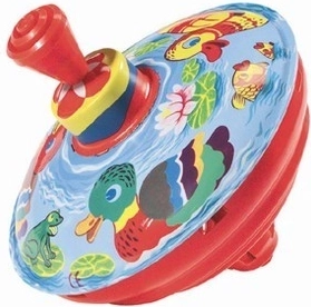 Trottola colorata con motivo di paperelle nello stagno che divertirà i più piccoli e sosterrà le loro abilità. Con una semplice pressione della leva, la trottola gira ed emette il tipico suono. Il giocattolo sviluppa la motricità fine, la coordinazione dei movimenti e soddisfa le norme europee di sicurezza.