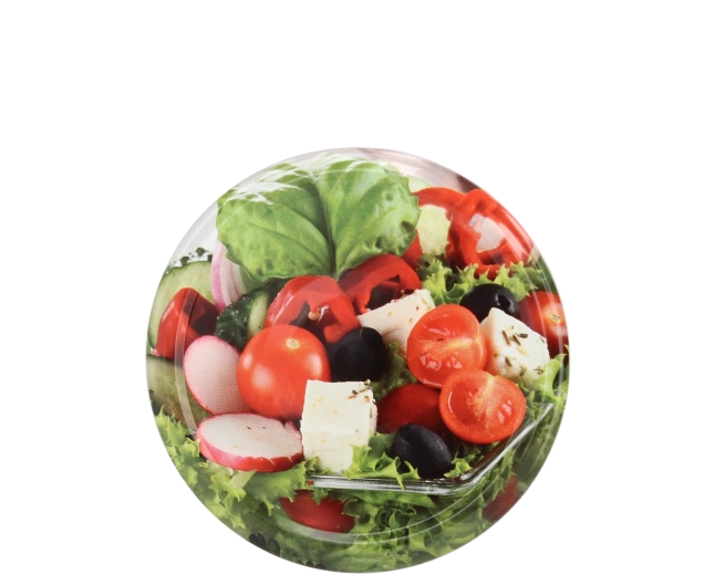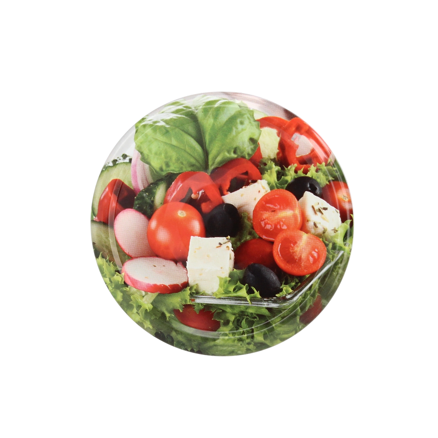 Affidati ai resistenti coperchi metallici con diametro di 66 mm e quattro ganci, che assicurano una chiusura ermetica senza perdite. Il decoro con motivo di verdure ravviverà i tuoi vasetti e conferirà alle scorte fatte in casa un aspetto professionale.