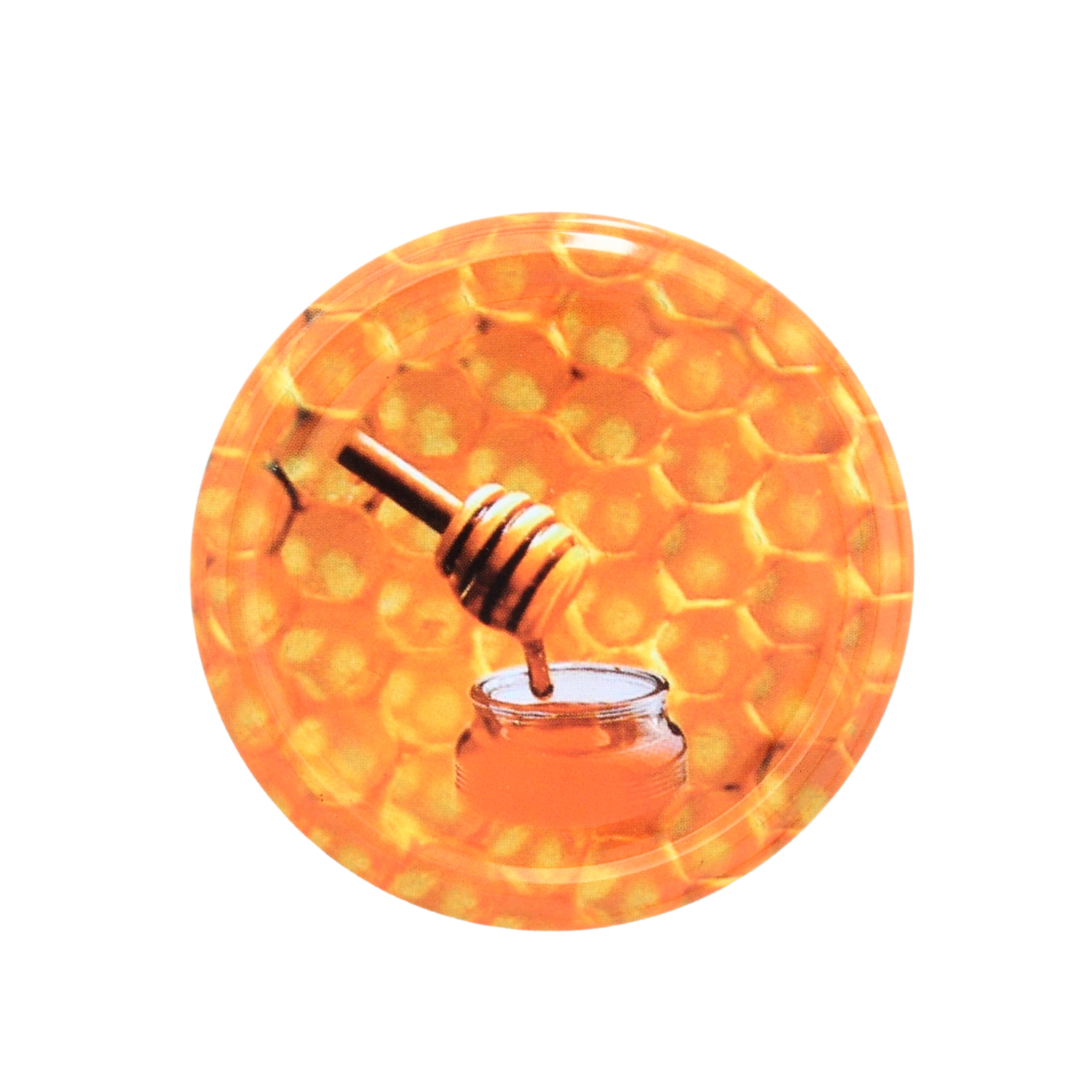 Pratico set di 10 coperchi con diametro 82 mm e decorazione a tema miele, ideale per conserve e stoccaggio domestico, in particolare del miele. I coperchi in acciaio zincato con strato interno in silicone garantiscono ottima tenuta, protezione affidabile del contenuto e facilità d’uso grazie alla chiusura click. Il design accattivante dona ai tuoi barattoli un aspetto estetico adatto sia all’uso personale sia come regalo elegante.