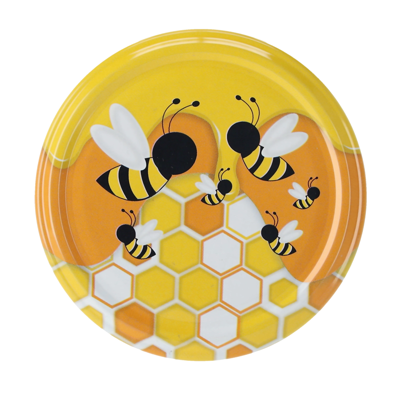 Questi coperchi sono un’ottima scelta per apicoltori, piccoli produttori e per le conserve domestiche. La grafica con ape attira l’attenzione e aiuta a distinguere il tuo prodotto sullo scaffale.