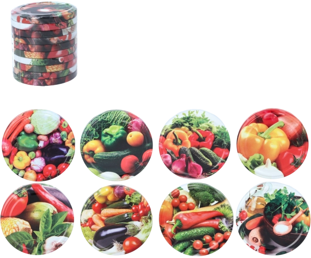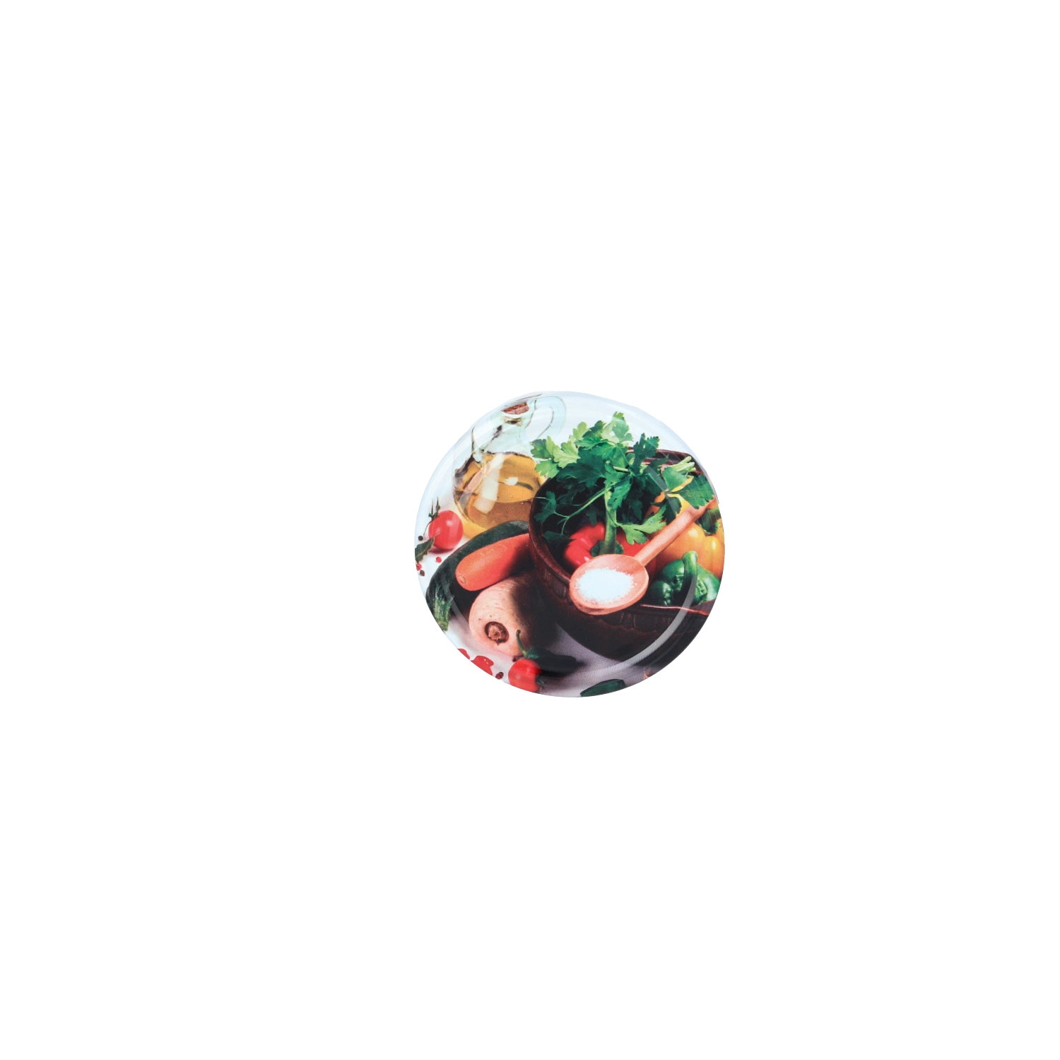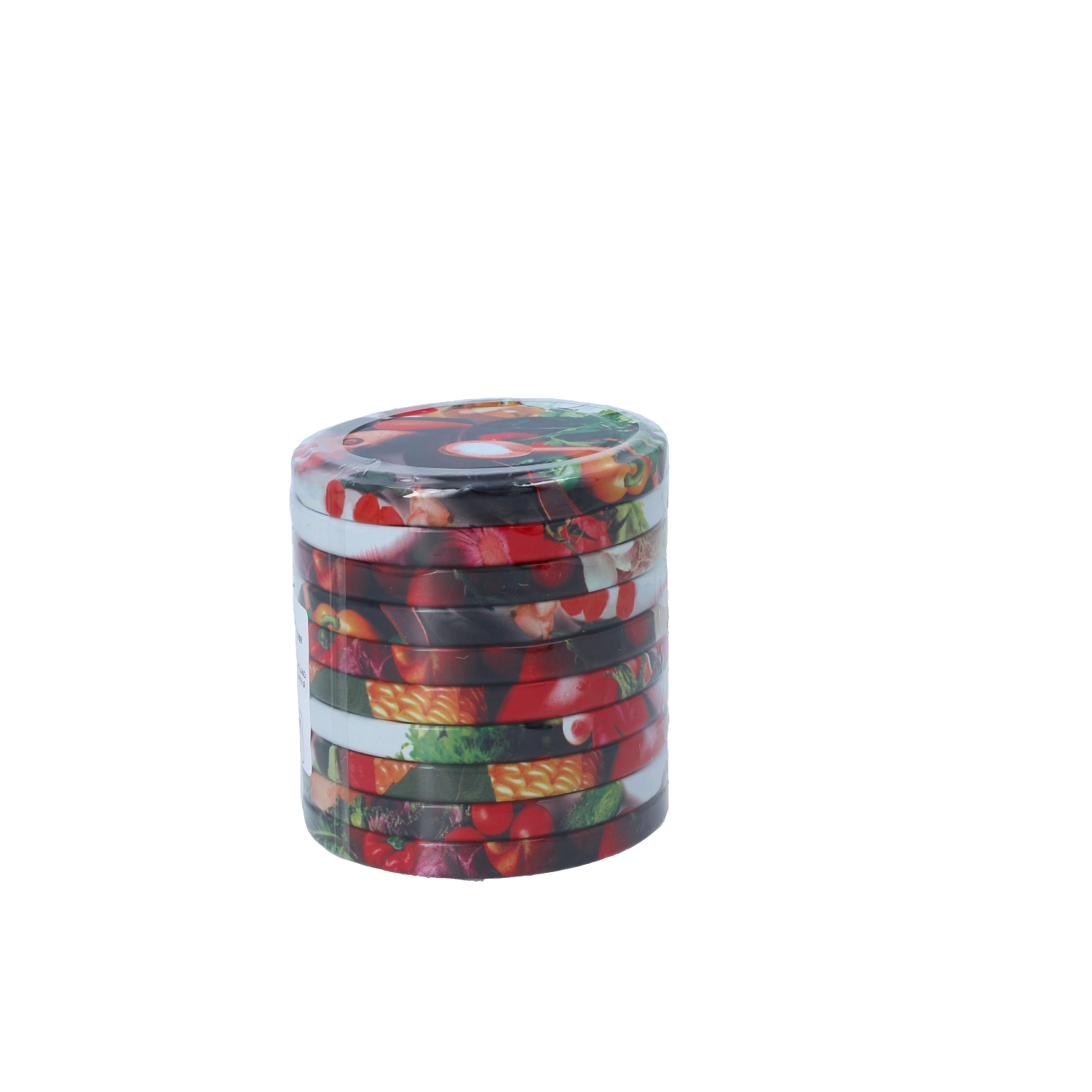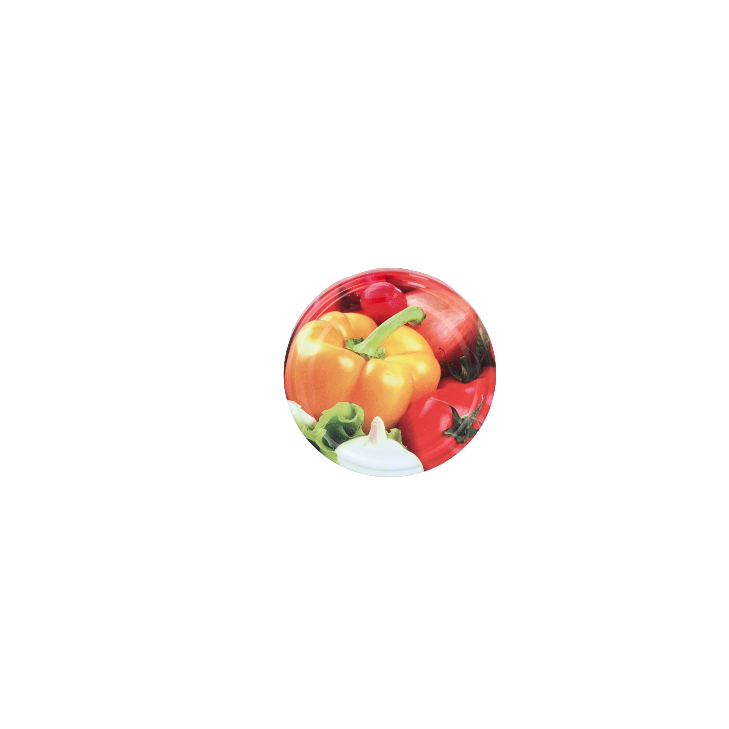 Realizzati in metallo di alta qualità idoneo al contatto con gli alimenti, proteggono da essiccazione, umidità e ossidazione. La superficie lucida con motivo di verdure a colori dona alle conserve un aspetto pulito ed estetico in ogni cucina. I coperchi sono progettati per un uso ripetuto e una facile manutenzione.