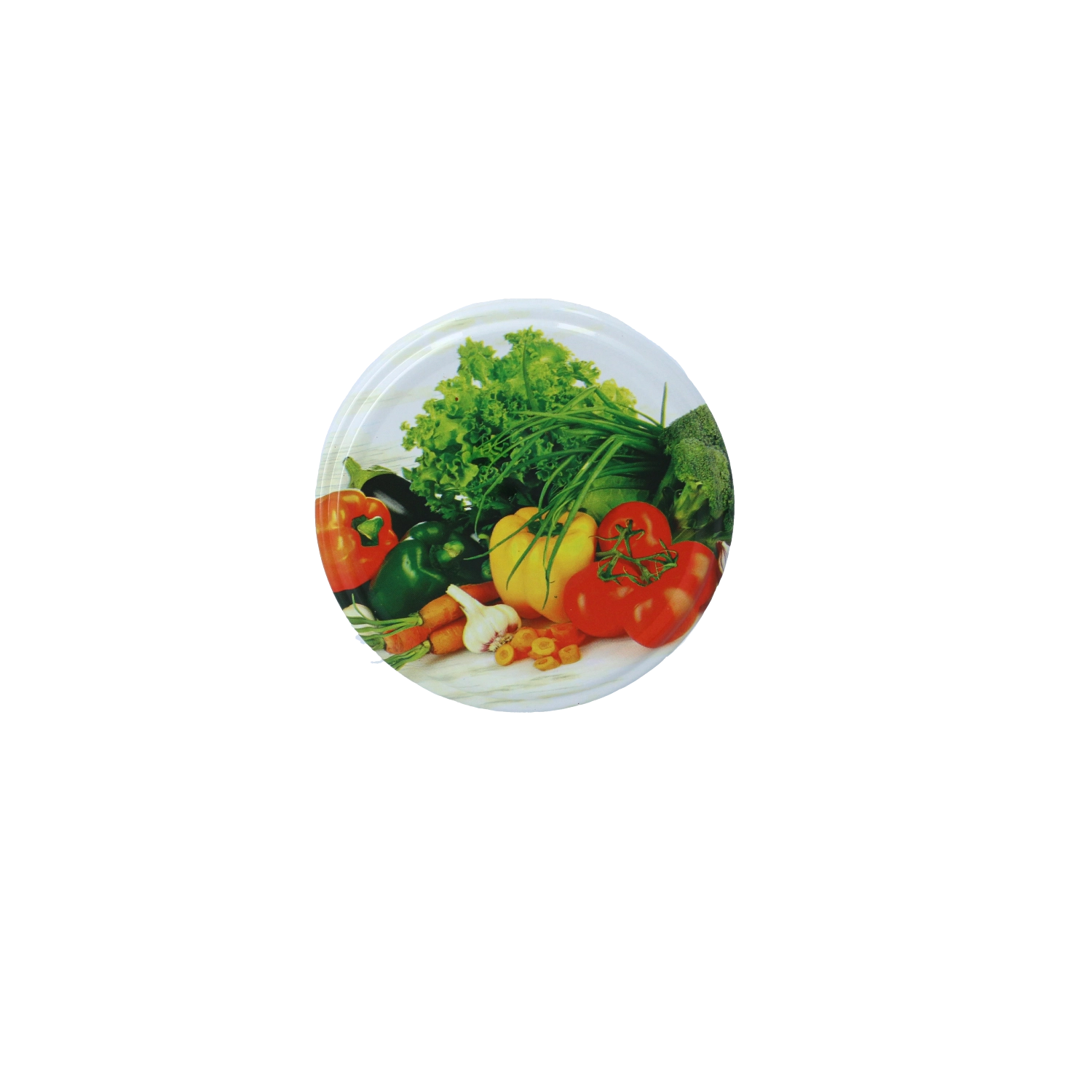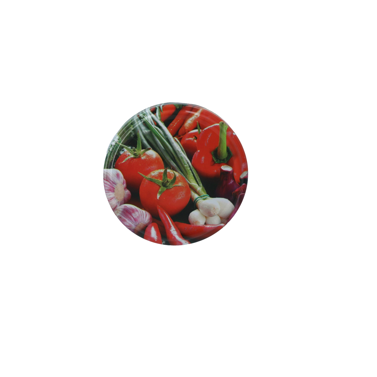 Il motivo a colori con verdure dona ai barattoli un aspetto estetico: ideale per regali, banchi contadini e la dispensa di casa.