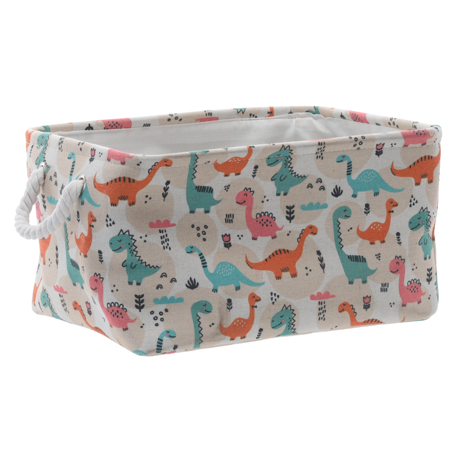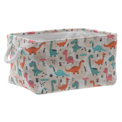 Tieni la cameretta ordinata e accogliente con il cesto in tessuto dal vivace motivo di dinosauri in tonalità arancioni, verdi e rosa su sfondo chiaro. Il cesto è leggero ma stabile grazie ai bordi rinforzati ed è adatto a camerette, sale giochi e asili.