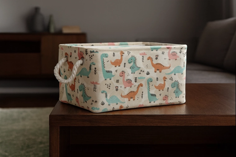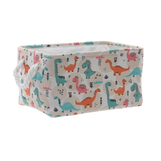 Il cesto portaoggetti rettangolare con allegro motivo di dinosauri unisce funzionalità e design giocoso. Grazie alle dimensioni compatte 26 × 36 × 20 cm sfrutta al meglio lo spazio in cameretta, in camera da letto o in soggiorno. Il tessuto resistente mantiene la forma, si pulisce facilmente e resiste all’uso quotidiano.