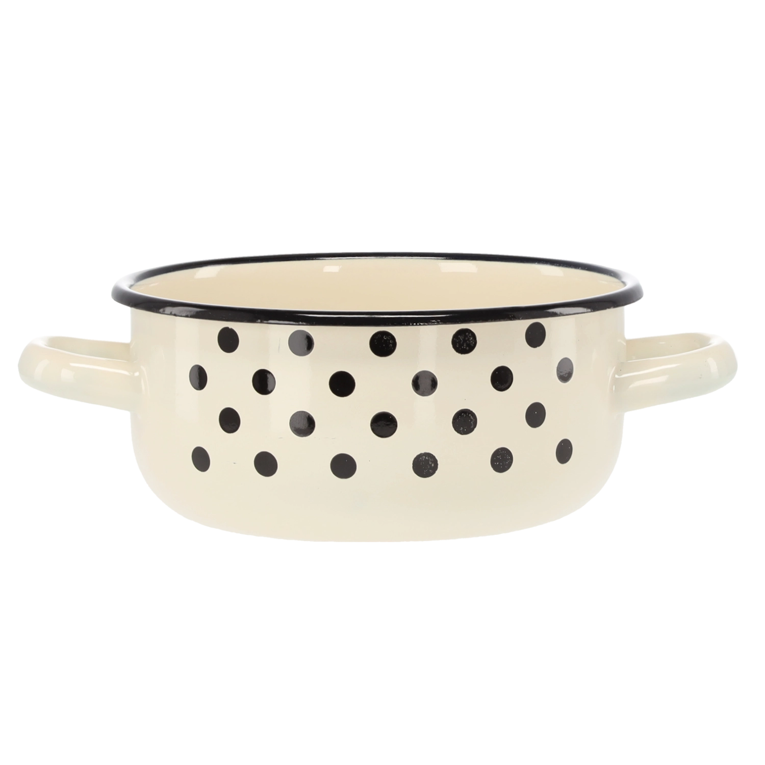Pratica casseruola smaltata con capacità di 1,5 l e diametro di 16 cm, in elegante colore bianco con decorativi pois. Grazie ai due manici si maneggia con facilità, ideale per la cottura quotidiana, il riscaldamento e il servizio in tavola. Smalto resistente, design elegante e facile manutenzione per il piacere di cucinare ogni giorno.