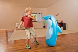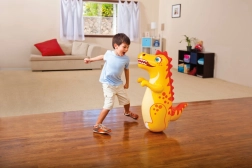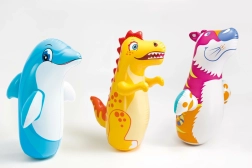 Divertente animaletto da box gonfiabile per bambini dai 3 anni che porta tanto movimento e risate in casa e all’aperto. Grazie alla base stabile con sabbia, dopo ogni spinta ritorna sempre in posizione, ideale per scaricare energia in sicurezza. Realizzato in vinile robusto, pre-testato e dotato di valvola di sicurezza. Disponibili 3 simpatici motivi di animaletti. Dimensioni circa 97 × 61 cm.