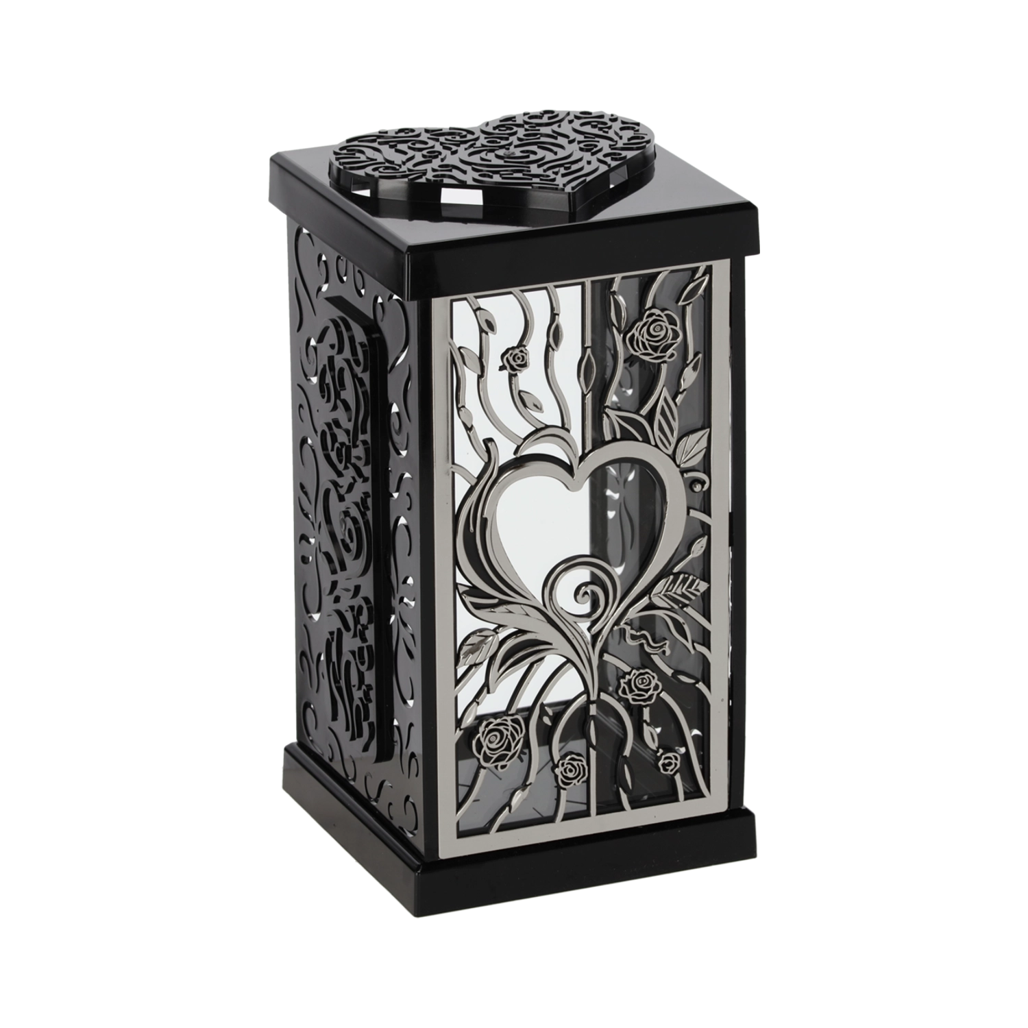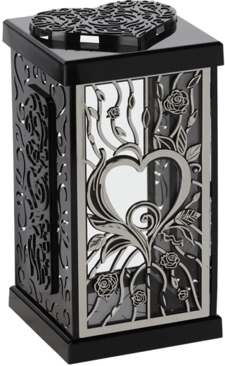 Elegante lampione cimiteriale alto 30 cm con un marcato motivo di rosa, disponibile nelle combinazioni nero‑argento o nero‑oro. Si distingue per l'aspetto decorativo, la struttura resistente e la facile manutenzione, ideale per adornare con dignità tombe e luoghi di commemorazione.