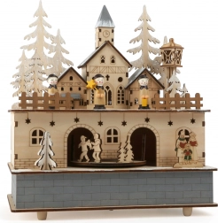 Il carillon in legno del marchio Small Foot ti porta in un magico villaggio invernale dove sarai deliziato da figure danzanti sotto un paesaggio innevato e illuminato. La melodia natalizia porterà conforto e gioia nella tua casa. Questa scatola è un complemento ideale per la decorazione natalizia e grazie all'illuminazione a LED offrirà magia serale.