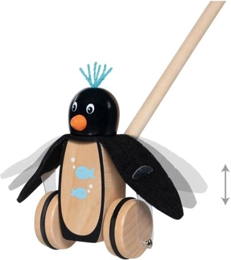 Adorabile pinguino in legno con bastone, ideale per i piccoli esploratori che stanno imparando a camminare. Grazie alle alucce in feltro, alle ruote stabili con pneumatici in gomma e all'impugnatura ergonomica, offre una guida fluida e sicura sia in casa che all'aperto. Realizzato in legno massello di alta qualità per durata e sicurezza.