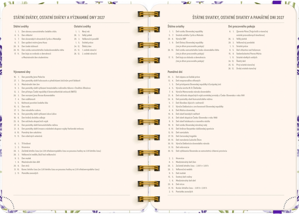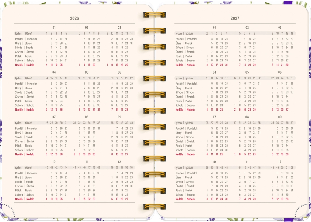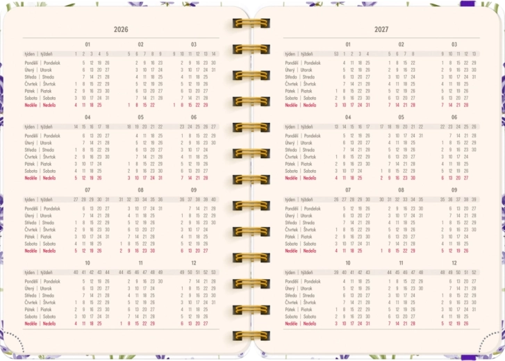 Il calendario settimanale in righe ceco-slovacco con nomi e festività facilita l’organizzazione del tempo al lavoro e a casa. Ogni settimana offre uno spazio dedicato per note, attività o scadenze importanti, mentre le panoramiche annuali 2026 e 2027 garantiscono un rapido orientamento su orizzonti più lunghi.