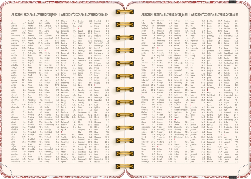 - Settimanale a righe, ceco‑slovacco, con nomi e festività