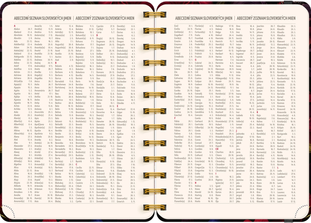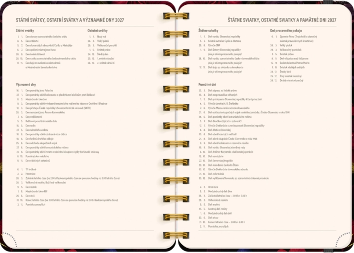 - Calendario settimanale ceco‑slovacco con nomi e festività