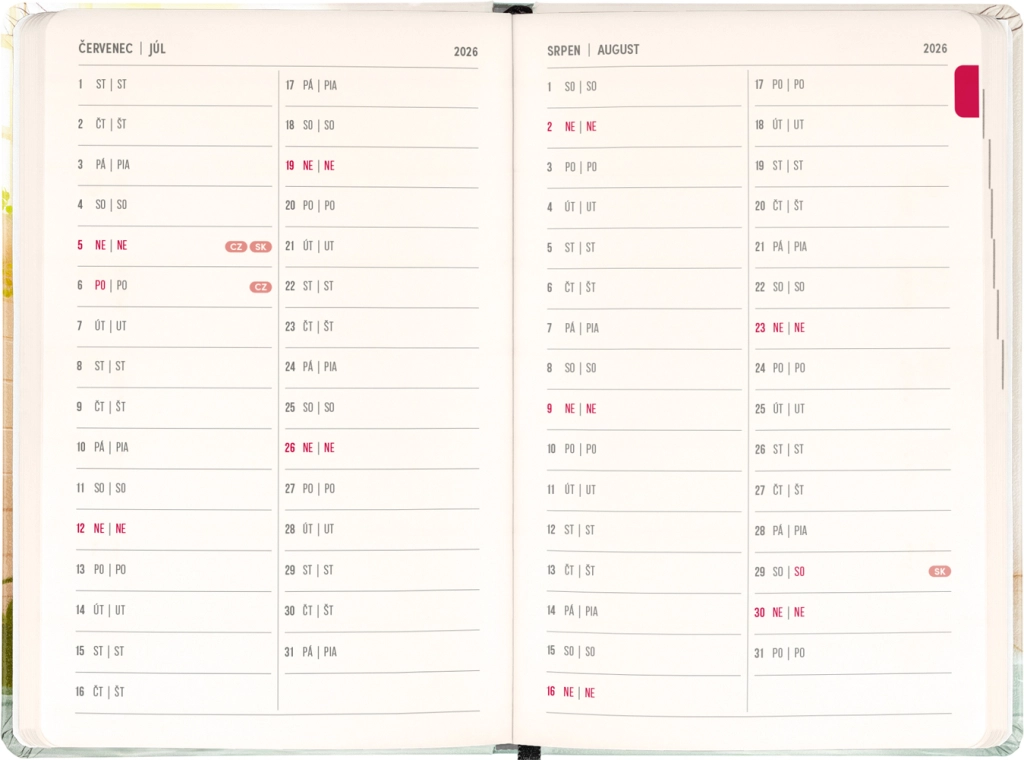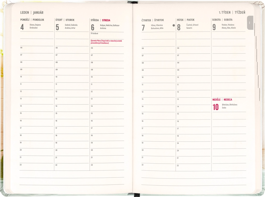 Quest’agenda piacerà a chi apprezza la combinazione di funzionalità e design giocoso. Il calendario ceco‑slovacco con nomi e onomastici semplifica la pianificazione e aiuta a non dimenticare i giorni importanti.