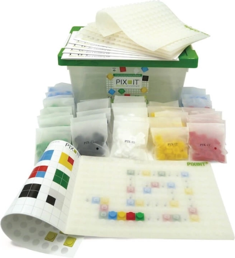 Set educativo universale PIX-IT Box 6 per scuole dell’infanzia, scuole, terapie e apprendimento domestico. Include 1080 tasselli in silicone in 6 colori, 6 basi in silicone (30 × 21 cm) e 6 quaderni con esercizi. La robusta scatola con coperchio facilita lo stoccaggio, il trasporto e il mantenimento dell’ordine. Materiali sicuri senza BPA, senza ftalati, conformi alle norme EN‑71/ASTM. Ideale per sviluppare logica, creatività e motricità fine.