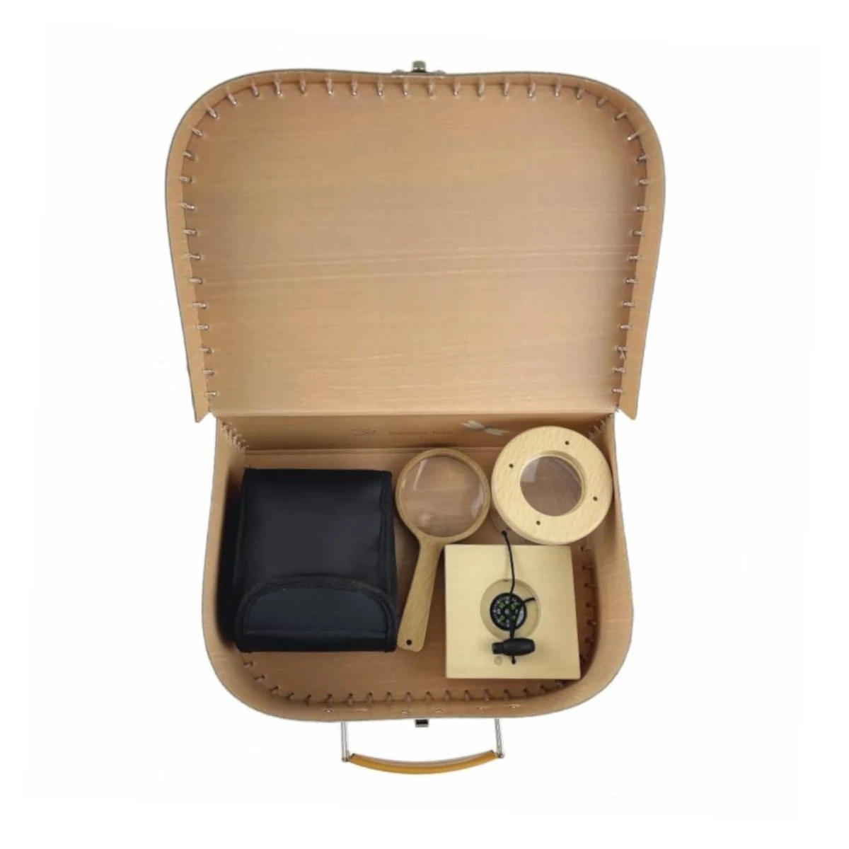 - Oltre 20 elementi educativi – lente d’ingrandimento, carte, modelli di animali e semplici strumenti di osservazione.