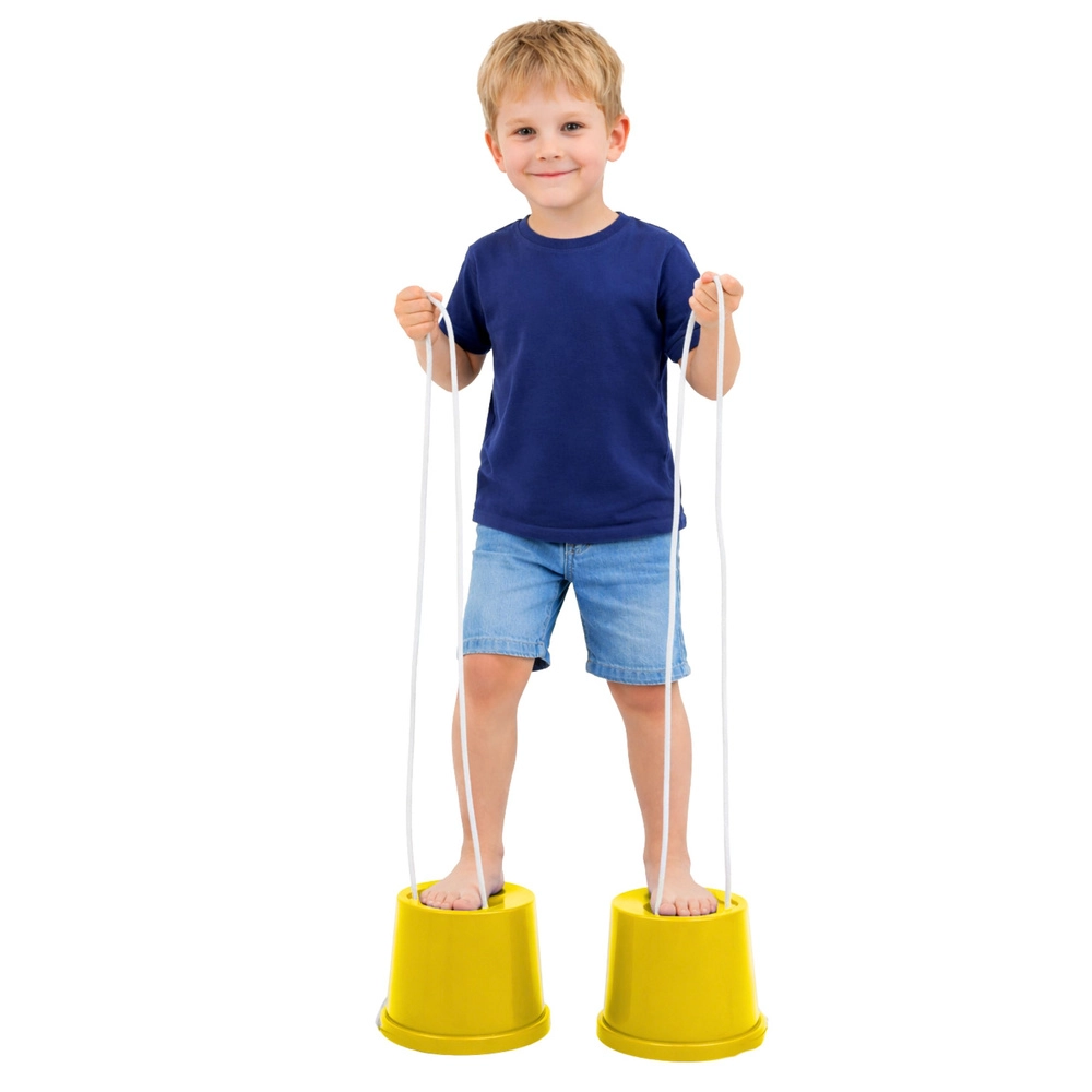 Questi semplici e resistenti stilts a secchiello sono un classico per lo sviluppo delle abilità motorie. I bambini allenano in sicurezza il bilanciamento del corpo, la stabilità e le abilità di coordinazione, mentre si divertono muovendosi in giardino, al parco giochi e in palestra.