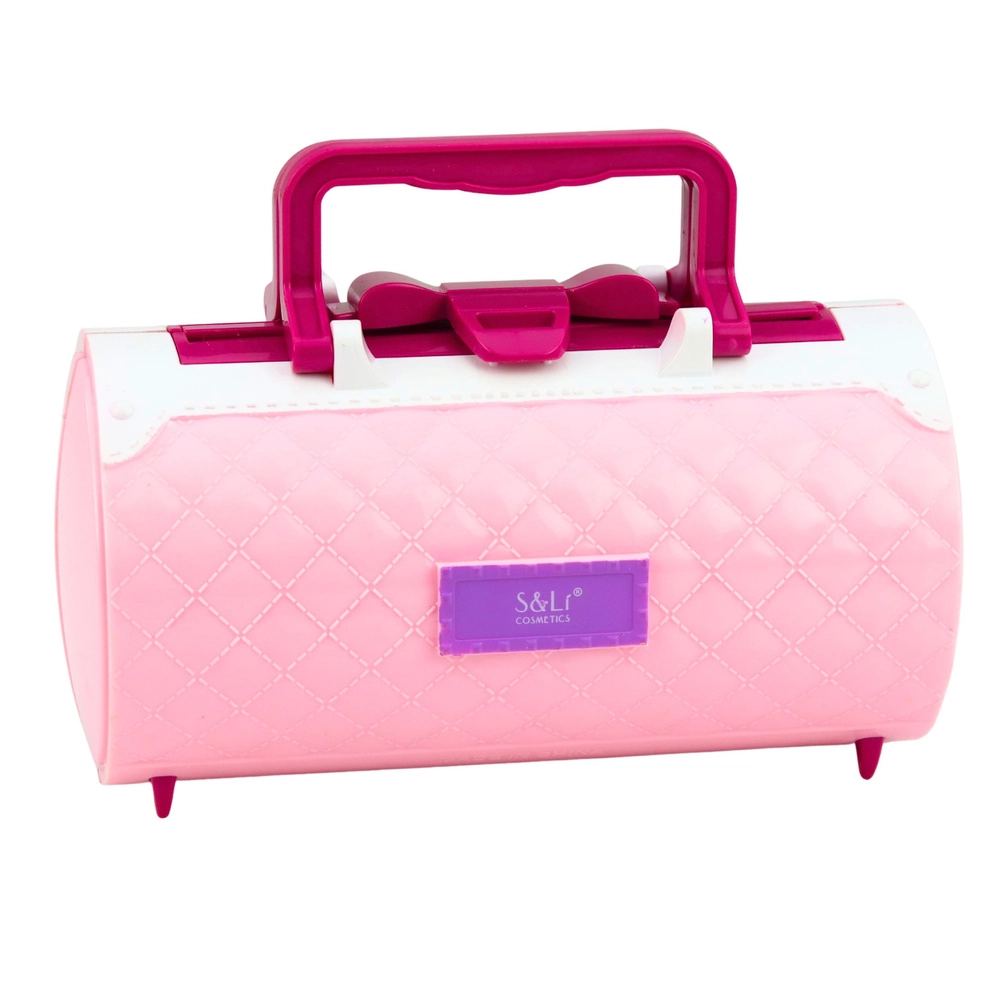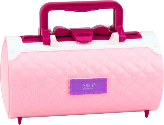Elegante valigetta rosa con manico e chiusura che garantisce un facile trasporto e una conservazione sicura dell’intero set cosmetico.