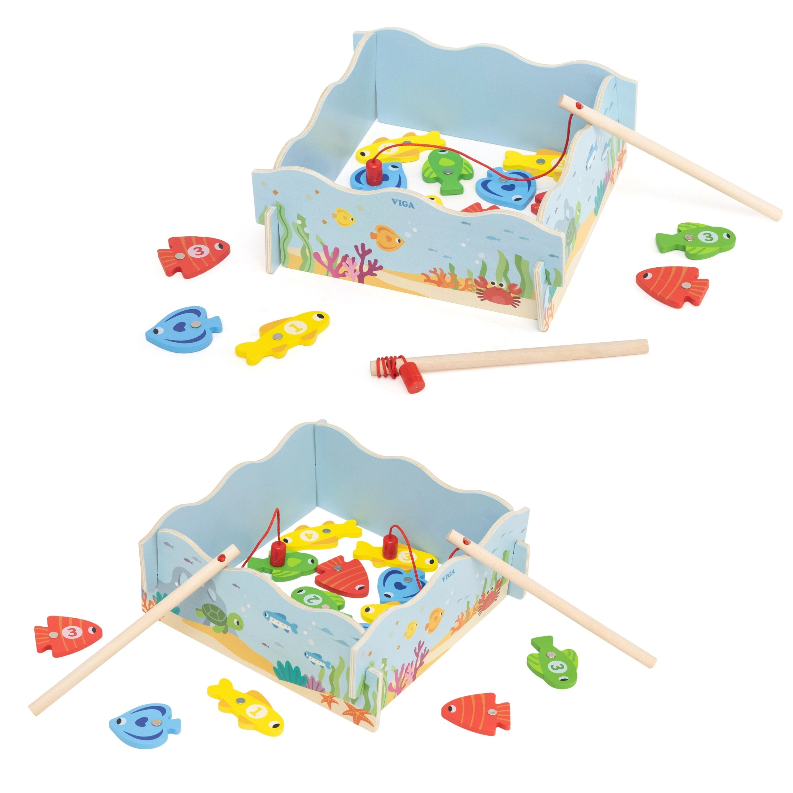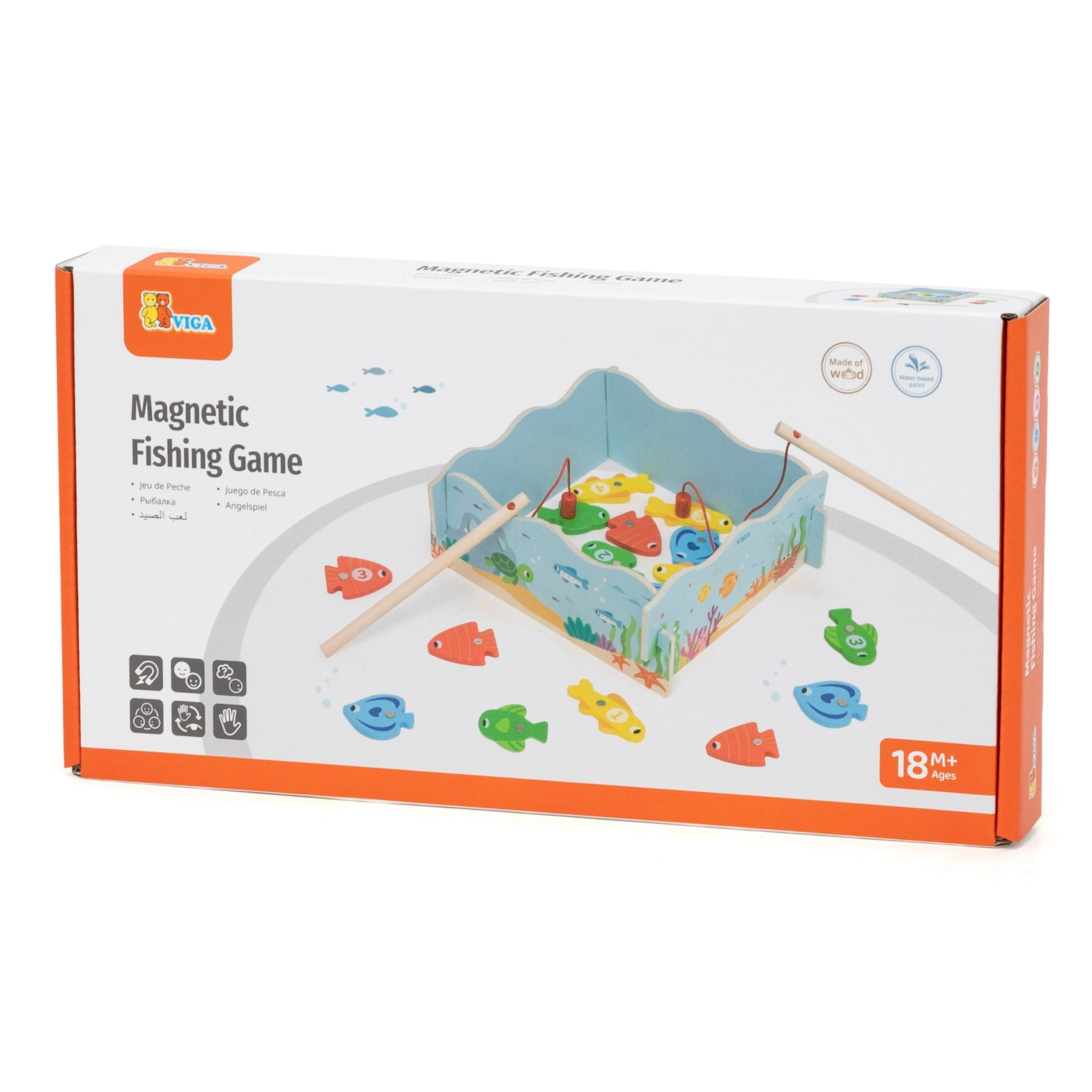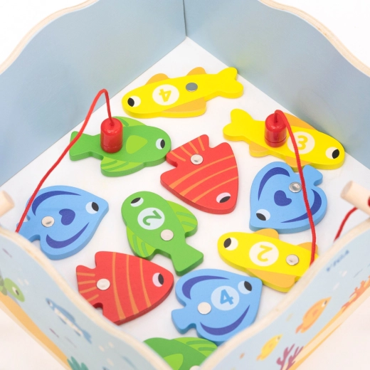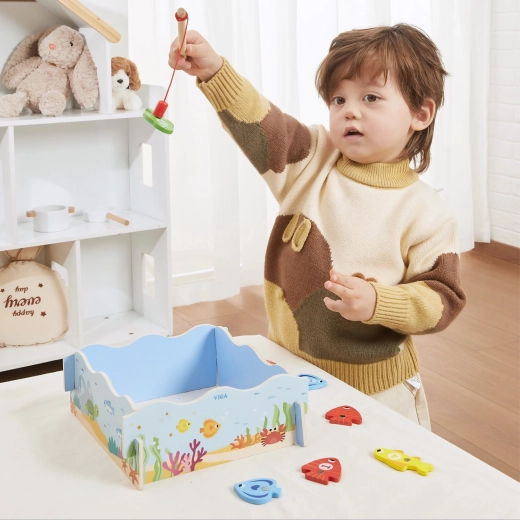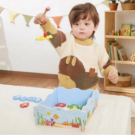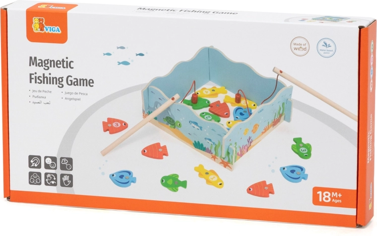 Regala ai bambini un divertimento intelligente che unisce gioco e apprendimento. Il gioco di pesca magnetica in legno VIGA include pesci colorati con numeri e due canne magnetiche, grazie alle quali i bambini allenano la precisione dei movimenti e la concentrazione. La scatola si trasforma in un “laghetto” blu e, dopo il gioco, tutto si riordina con facilità.