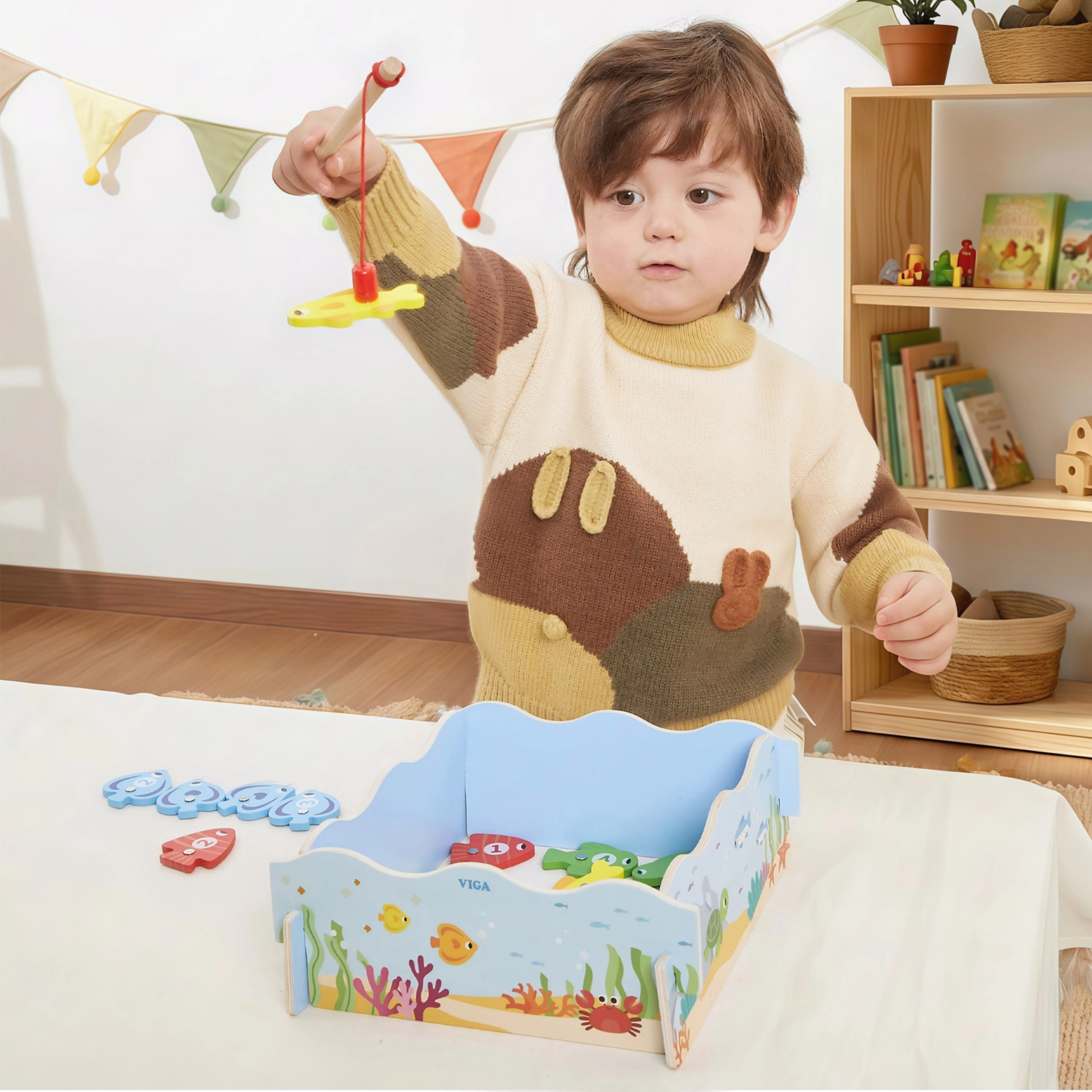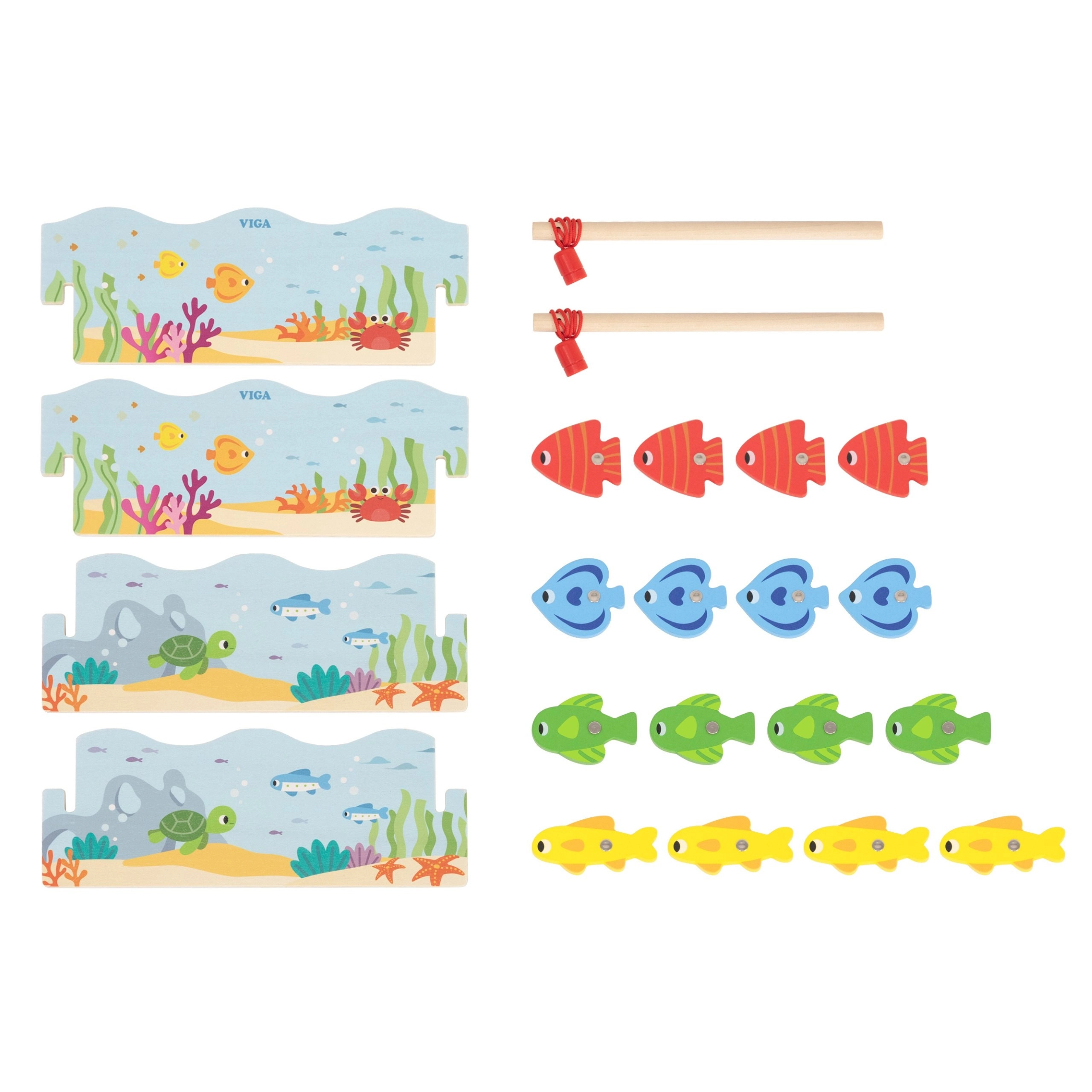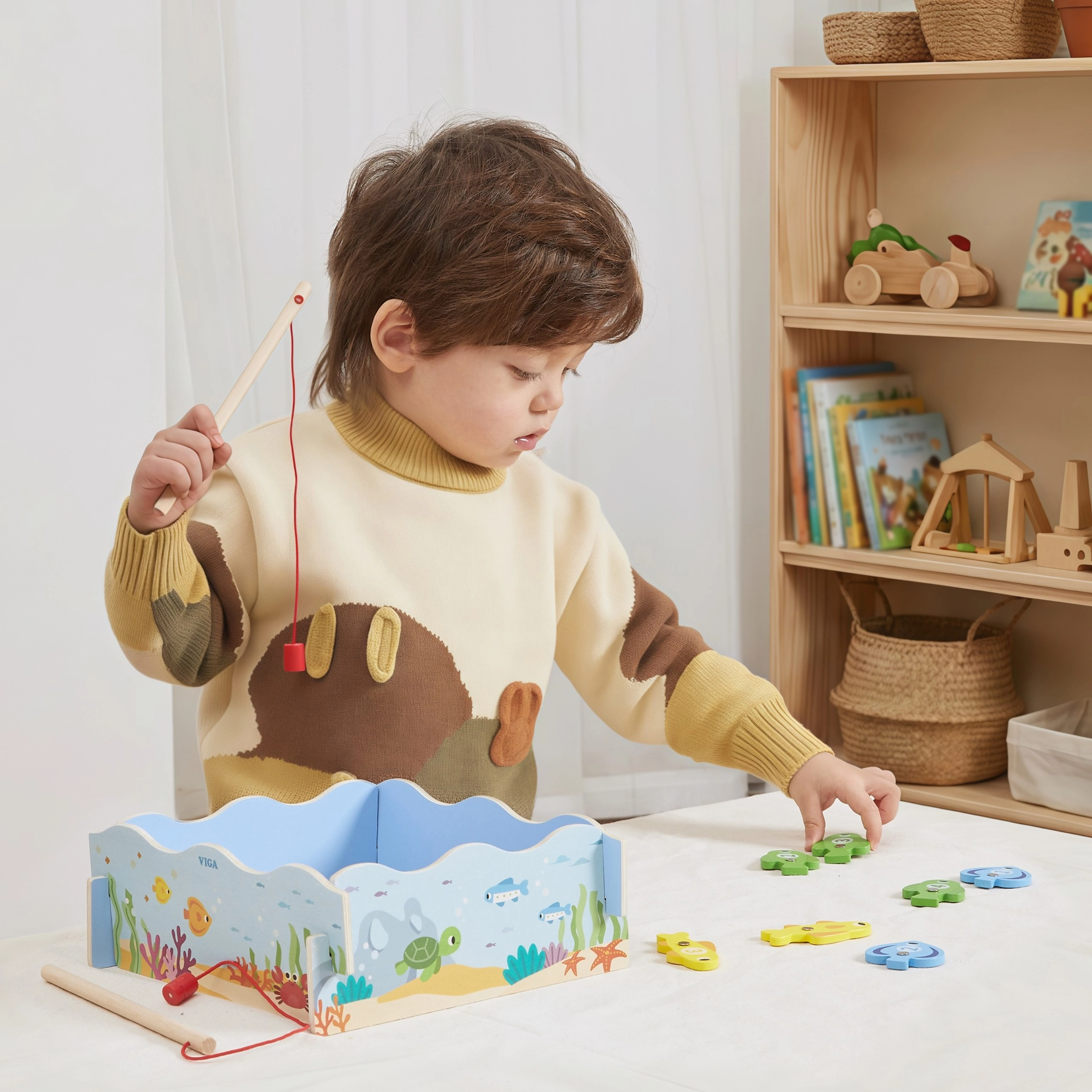 Regala ai bambini un divertimento intelligente che unisce gioco e apprendimento. Il gioco di pesca magnetica in legno VIGA include pesci colorati con numeri e due canne magnetiche, grazie alle quali i bambini allenano la precisione dei movimenti e la concentrazione. La scatola si trasforma in un “laghetto” blu e, dopo il gioco, tutto si riordina con facilità.