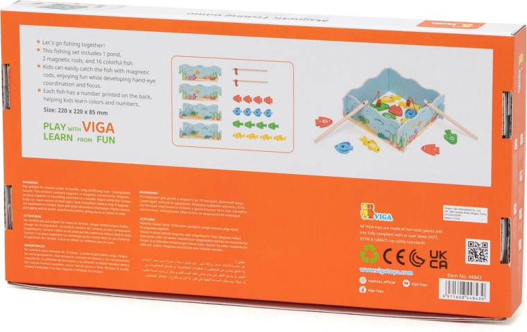 Cattura i pesciolini colorati e impara giocando! Il gioco di pesca magnetica in legno di VIGA offre una pesca magnetica sicura, pesci contrassegnati con numeri per imparare numeri e colori e una solida struttura in legno. Ideale per bambini a partire da 18 mesi, sviluppa motricità fine, coordinazione occhio–mano e pazienza. Il pratico “laghetto” funge anche da scatola portaoggetti.