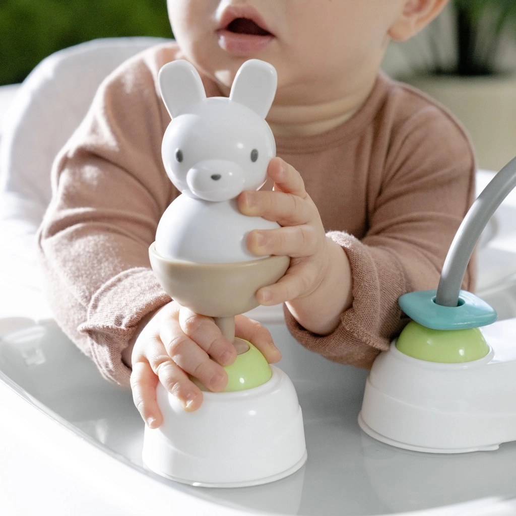 Tre modalità sostengono lo sviluppo in ogni fase, dai primi passi alla camminata sicura. Il vassoio con giochi può essere usato separatamente sul pavimento o sul seggiolone.