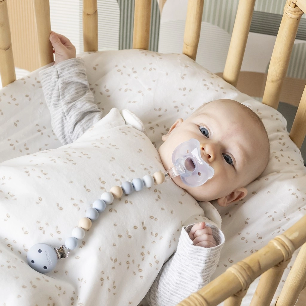 Il pratico clip per succhietto Nattou in tonalità pastello di blu e beige è l’accessorio ideale per ogni giorno. Previene la caduta e la perdita del ciuccio, che così rimane igienico e facilmente accessibile a casa e in viaggio. Grazie alle morbide perle in silicone senza BPA è delicato per i bambini e piacevole al tatto.