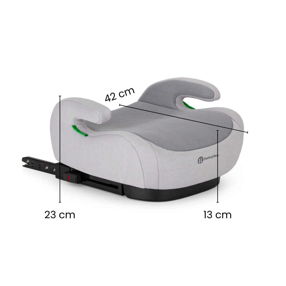 L’alzatina Optimus Pro i-Size Air del marchio PETITE&MARS eleva il bambino all’altezza corretta per il corretto posizionamento della cintura di sicurezza, garantendo un’allacciatura sicura e confortevole. I connettori ISOFIX in acciaio inox ancorano saldamente il seggiolino al veicolo, mentre la clip di guida aiuta a regolare la cintura affinché non passi sul collo né troppo in basso sotto la spalla.