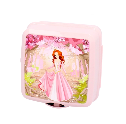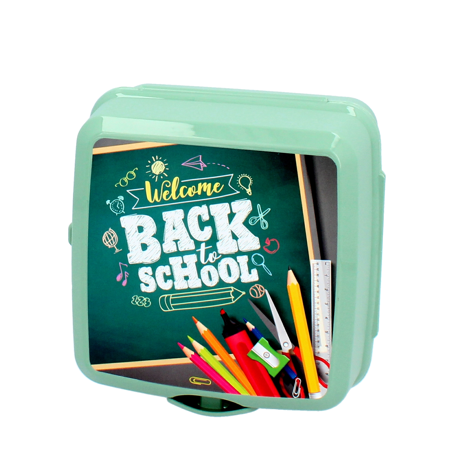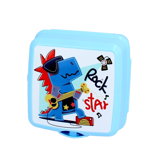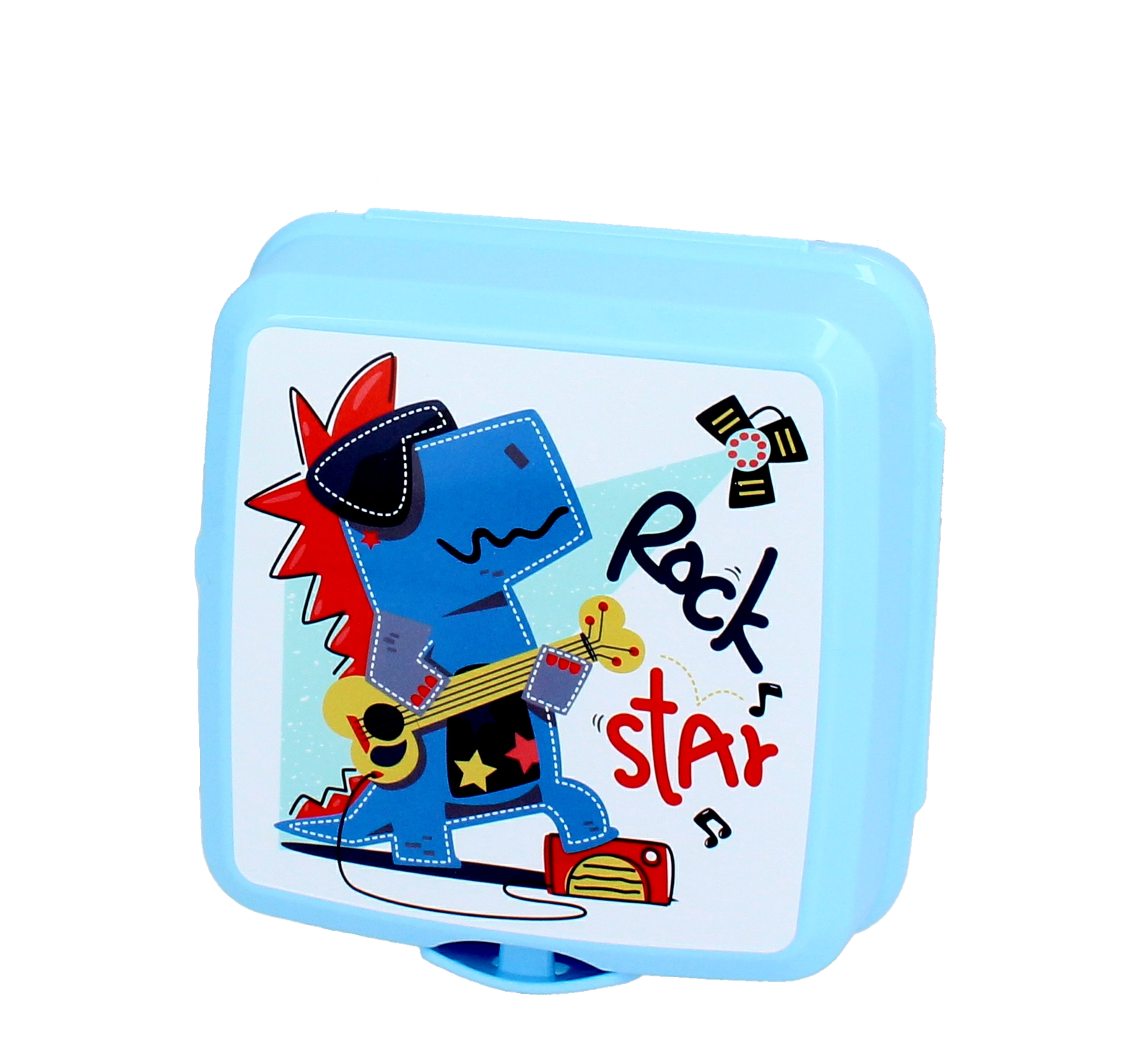 Il contenitore protegge in modo sicuro sandwich e snack grazie alla robusta chiusura a scatto. La forma compatta entra facilmente nello zaino.