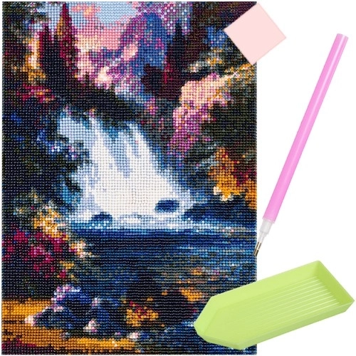 La scena dettagliata della cascata risalta grazie all’effetto brillante degli strass e, una volta completata, diventa un elemento decorativo di spicco in ogni interno.